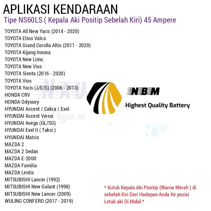 AKI Mobil NS60LS MF 45 Ah New Yaris Sienta Vios CRV Corolla GS Gold shine Accu Kering 60 Ampere 70 Ampere Avanza