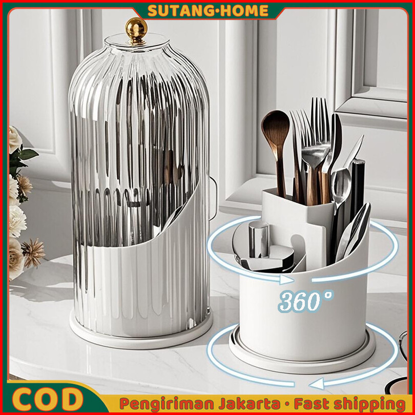 Sutangtempat Sendok Garpu Berputar - Organizer Multifungsi Untuk Sumpit Cutlery Alat Tulis Perlengkapan Dapur