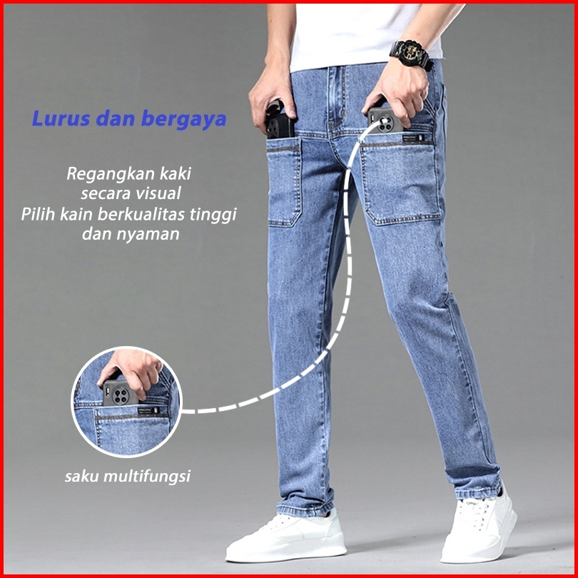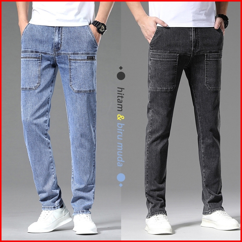 Celana Jeans Pria Celana Jeans Celana Cargo Jeans Pria Korean Style Pria Slim Fit Kulot Kantong Jeans Pria Panjang Model