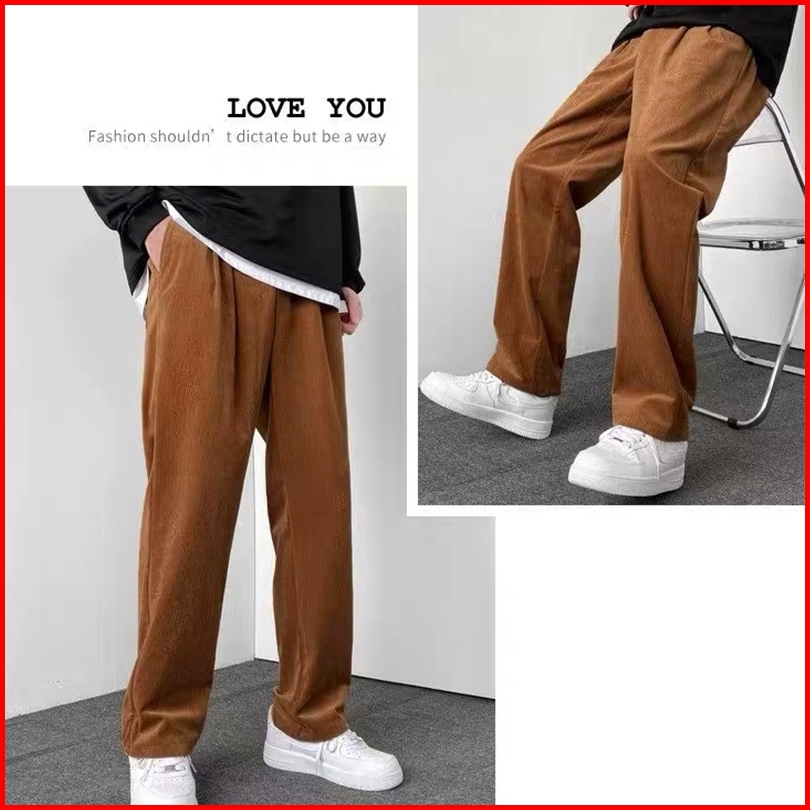 Celana Corduroy Pria Celana Korean Style Pria Celana Kulot Pria Celana Panjang Pria Celana Longgar Pria Karet Celana Cor