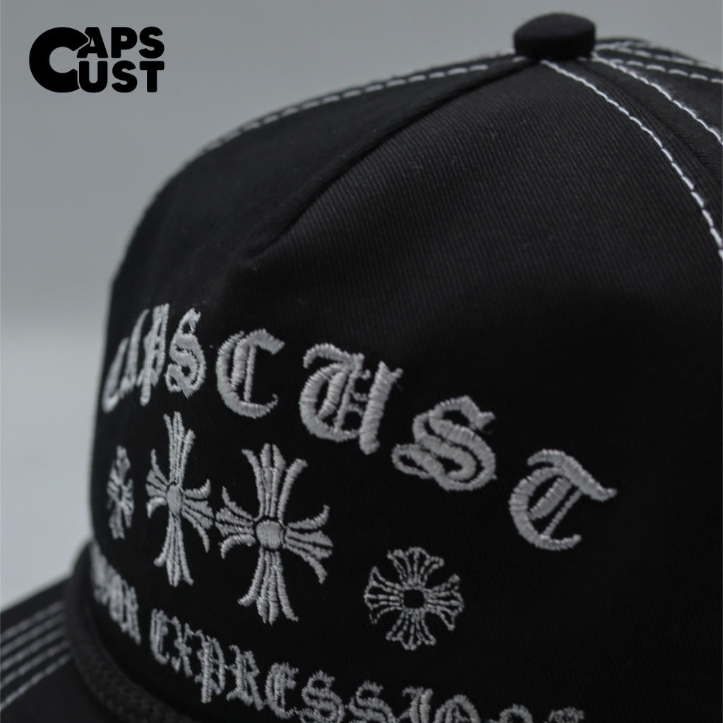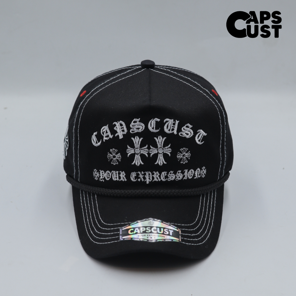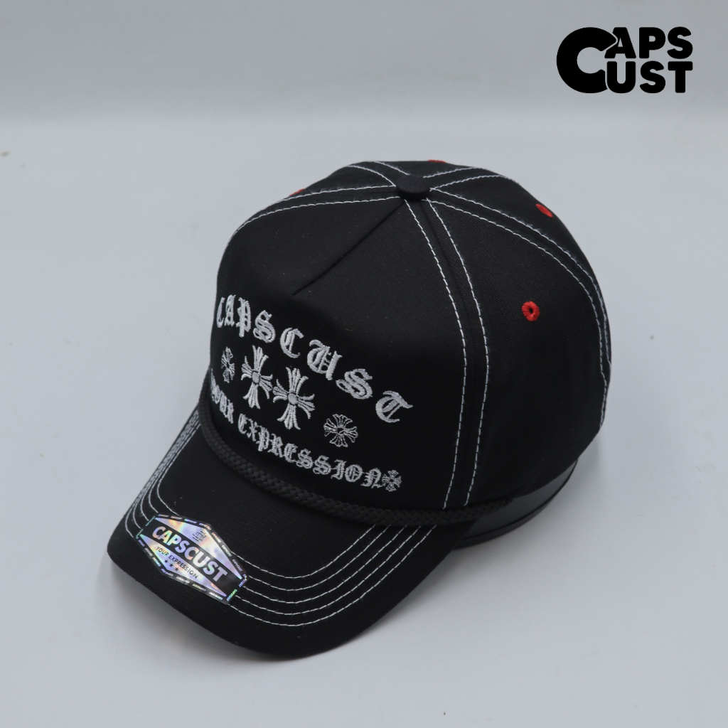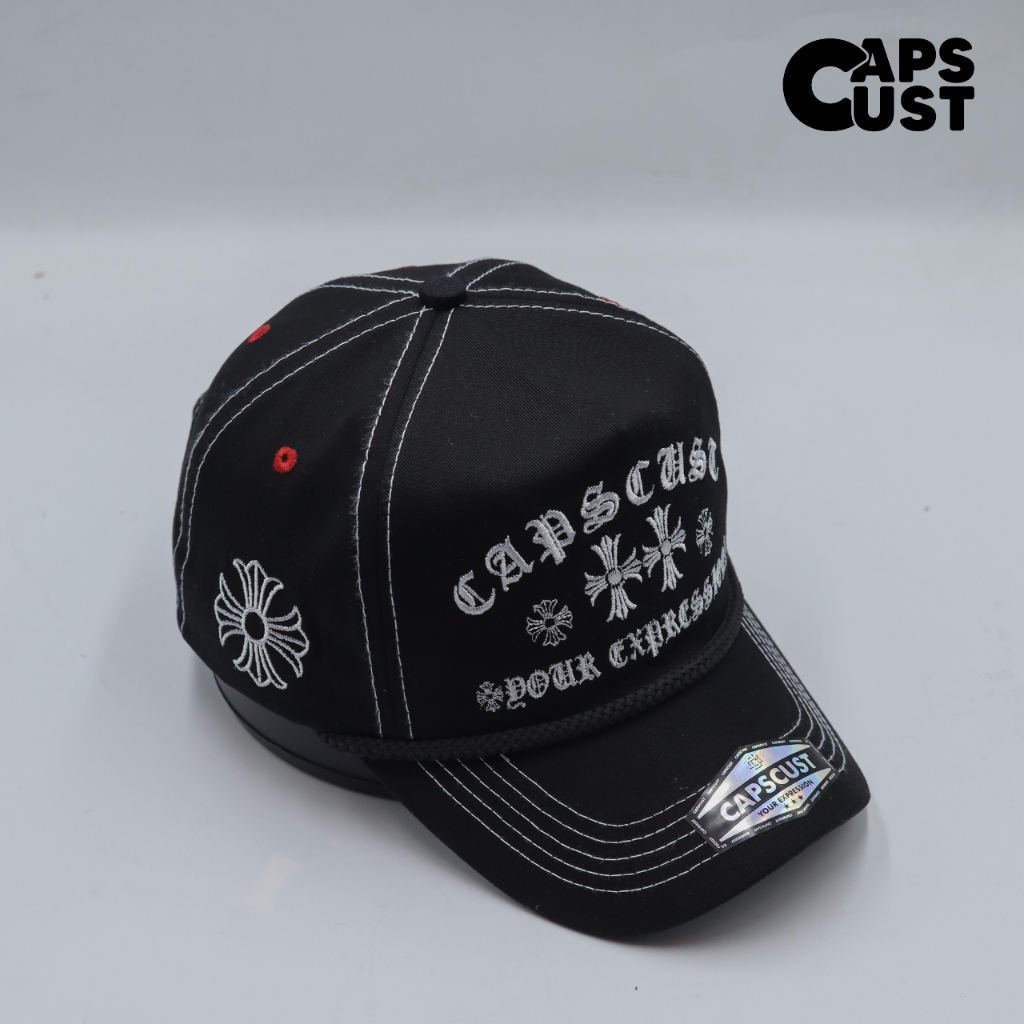 CAPS - TOPI BASEBALL CLASSIC ROPE HATS CAPSCUST GOTHIC MOTIF CHIP RED FULL BLACK LIST WHITE
