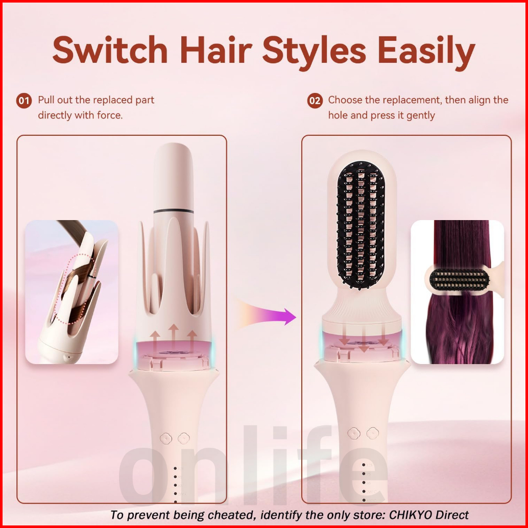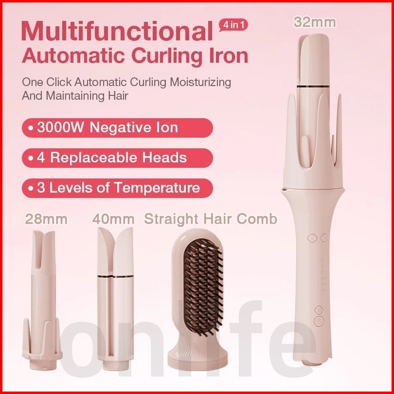 Vivid Vogue 4 In 1 Ceramic Catokan Curly Otomatis Hair Styler Multifungsi Hair Straightener Comb Catokan Keriting Otomat