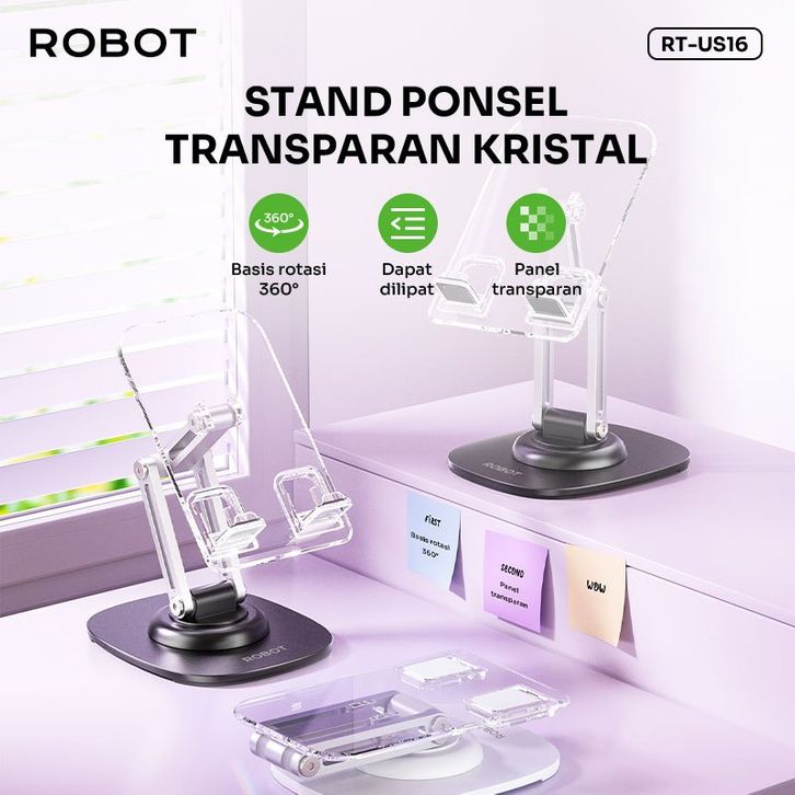 Holder Hp Universal Transparent Stand Holder RT-US16 Phone Tablet Holder Adjustable 360 Derajat Original
