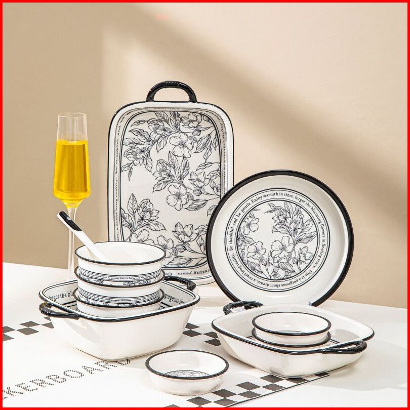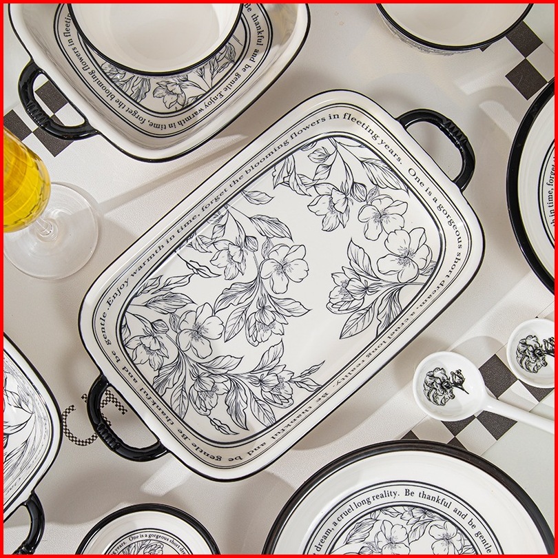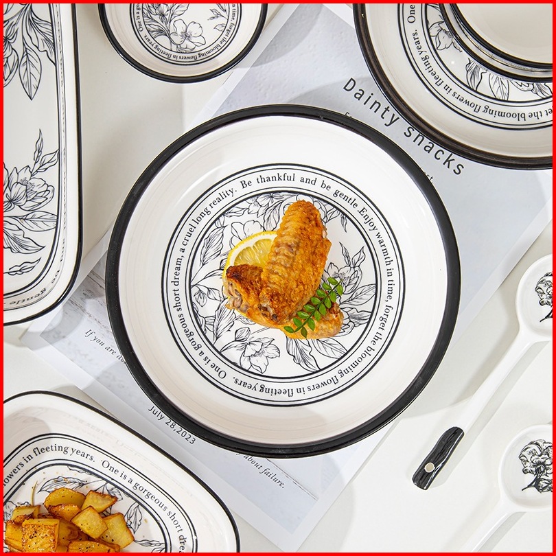Ashome Piring Keramik Makan Motif Franc Series Black Bloom Piring Makan Jepang Piring Makan Motif Black Bloom Piring Aes