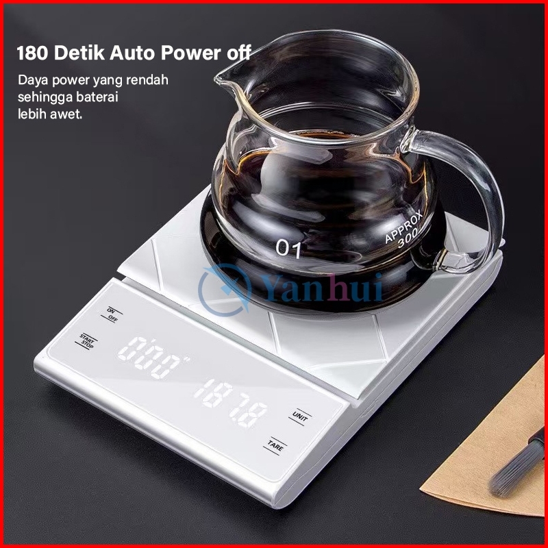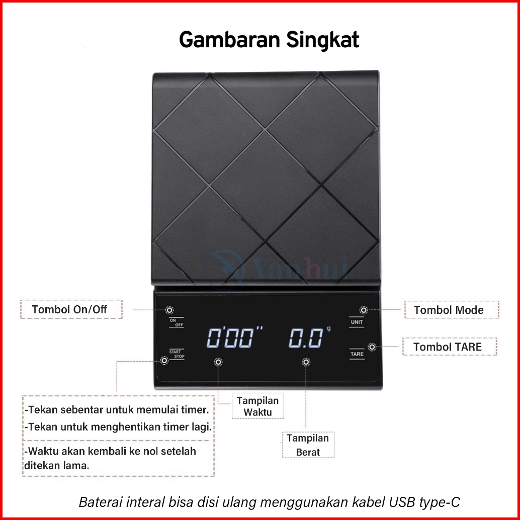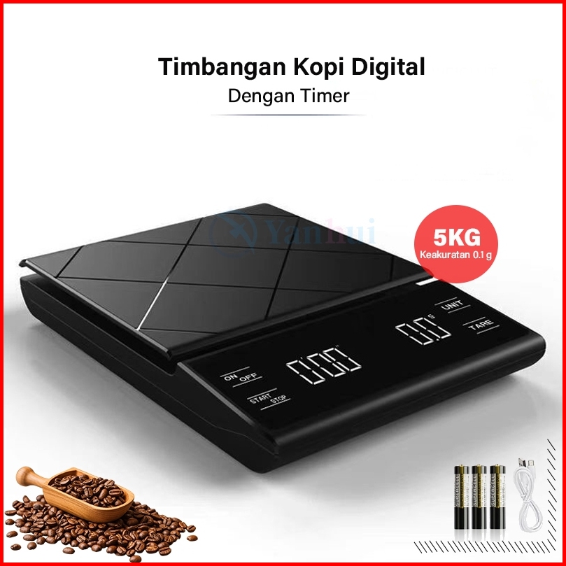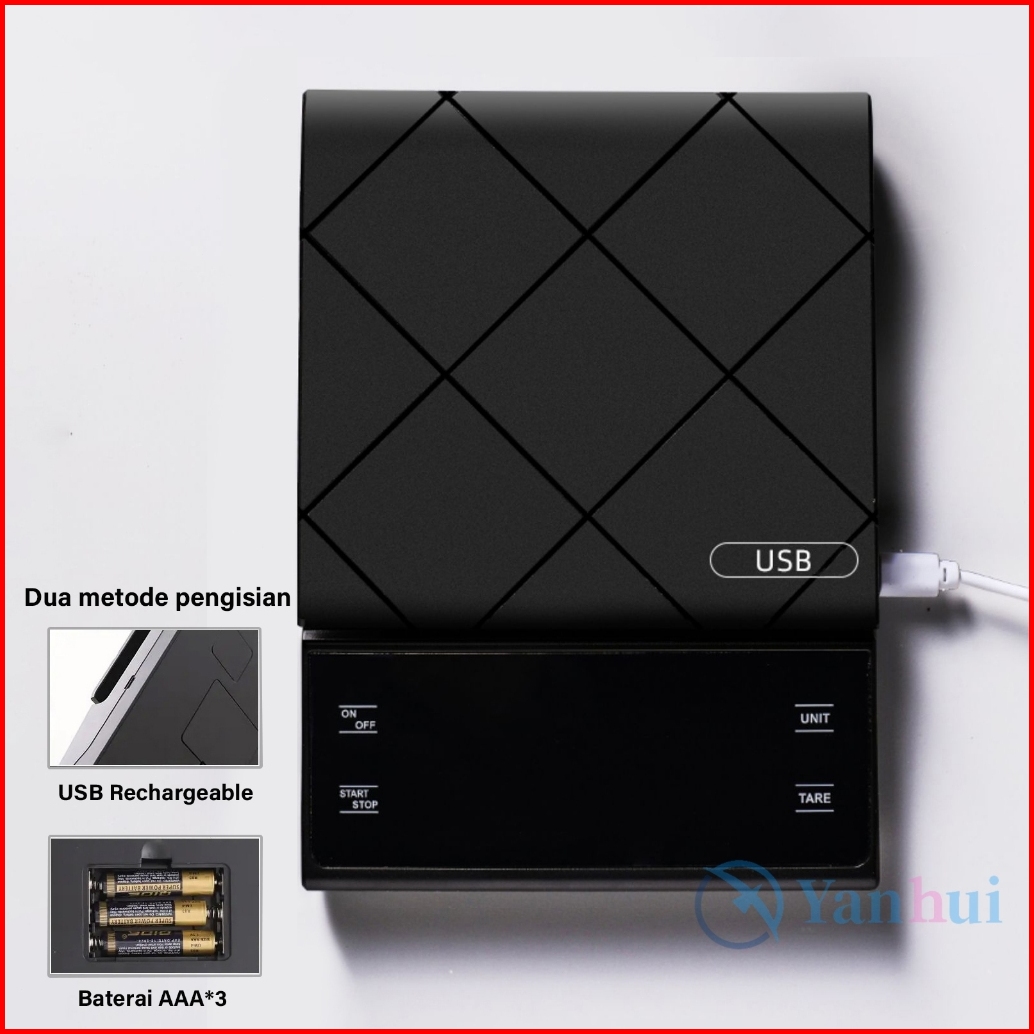 Timbangan Kopi Digital 0.1gr 5kg Auto-timer Akurasi Tinggi Usb Portable Chargeable