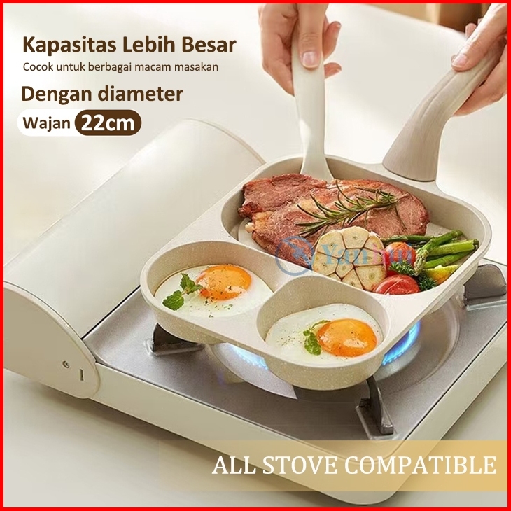 Wajan Penggorengan 3in1 Telur Pancake Omlet Pan Breakfast Anti Lengket Sosis Sayur Pancake Martabak