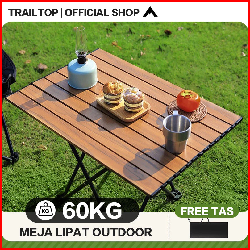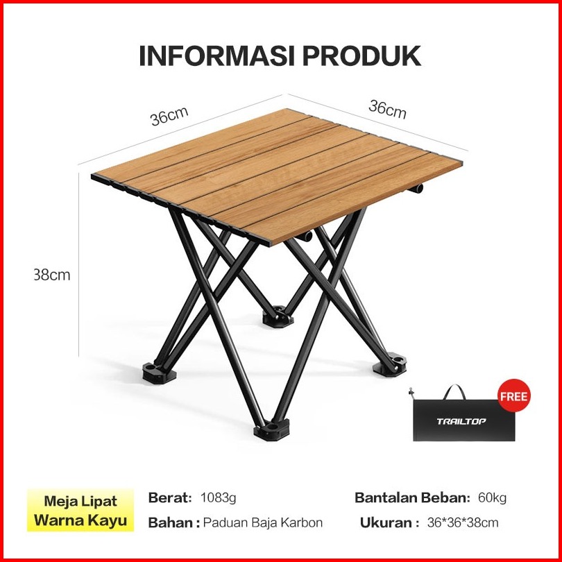 Trailtop Meja Lipat Outdoor Baja Karbon Kuat Anti Karat Meja Camping Portable Beban 60kg