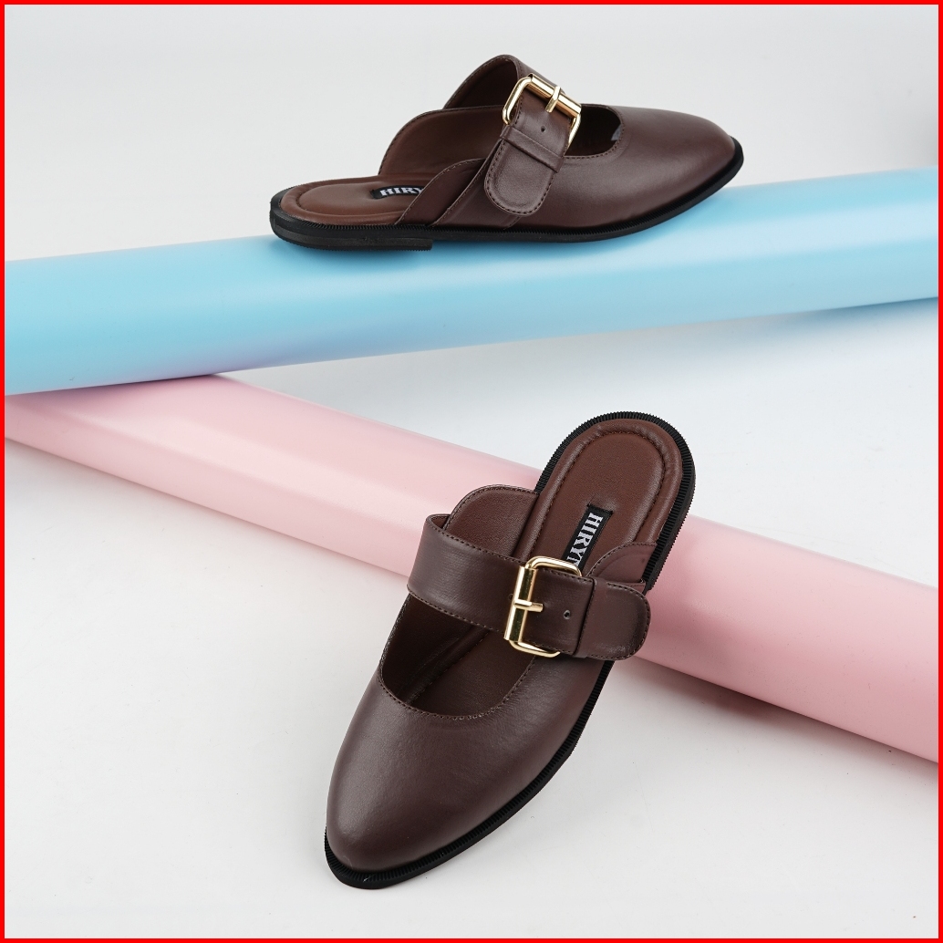 Sepatu Sandal Mules Flatshoes Wanita Heels Hak 2 Cm Vienna Coklat Hiryn