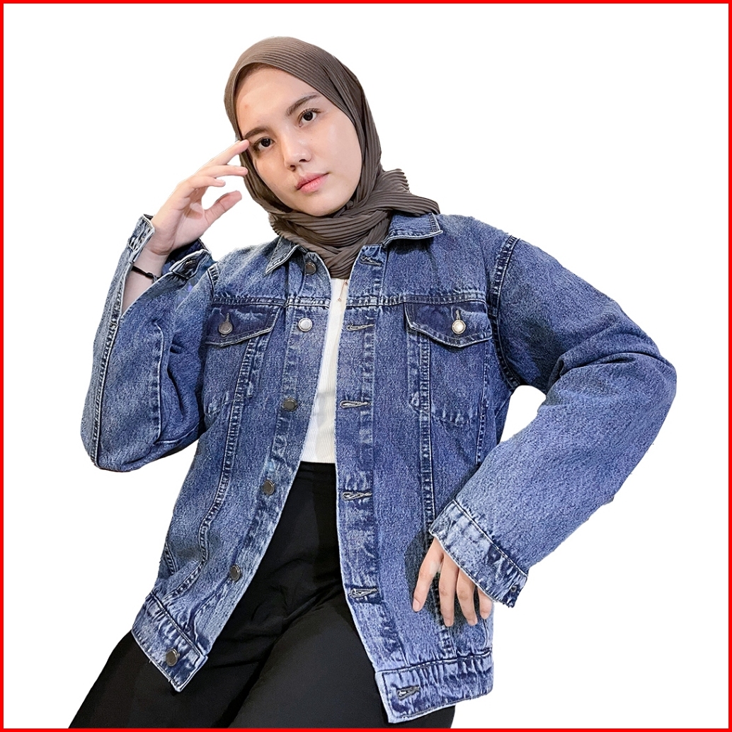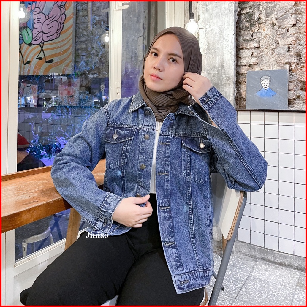 Jiniso Jaket Jeans Oversize Vintage Blue Acid