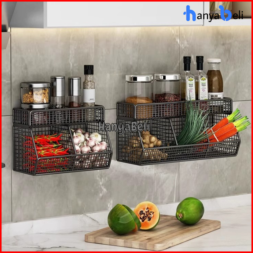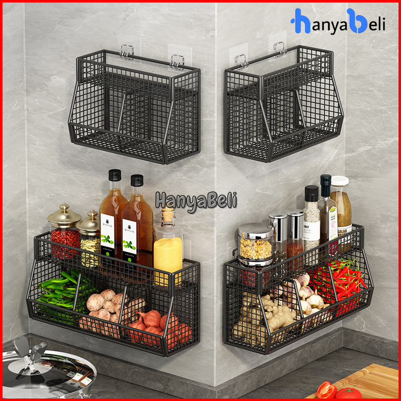 Rak Bawang Rak Bumbu Rak Keranjang Tempel Dinding Rak Dapur Anti Karat