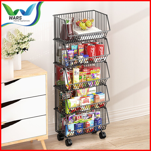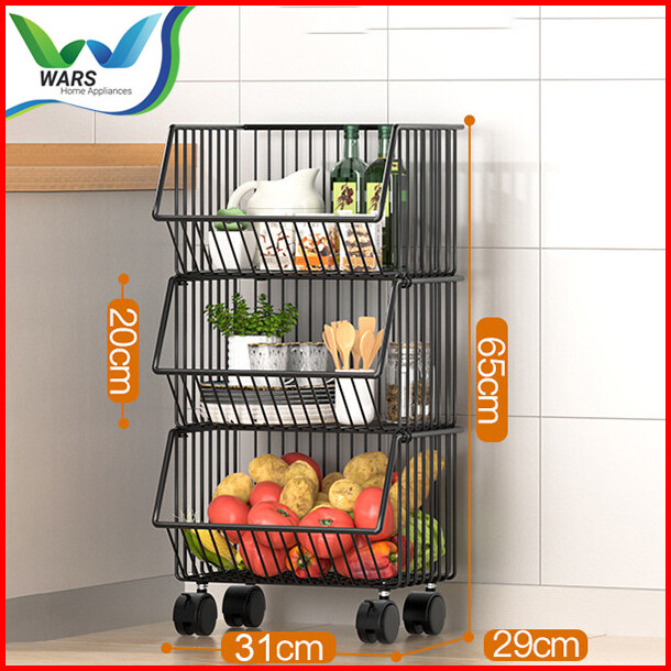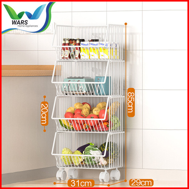 Wars Rak Tempat Penyimpanan Multifungsi Dengan Roda Keranjang Buah Sayuran Kitchen Storage