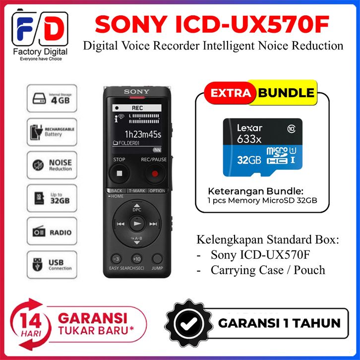 Sony ICD-UX570F Voice Recorder Digital Alat Perekam Suara Original