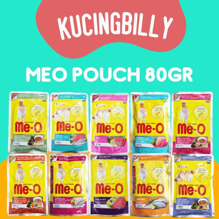 Meo pouch 80gr makanan basah kucing terlaris, termurah, dan berkualitas.