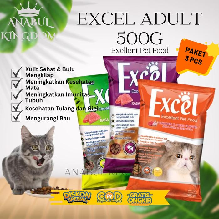 Paket 3 pcs EXCEL FRESHPACK 500Gr Makanan kucing Adult terlaris, termurah, dan berkualitas.