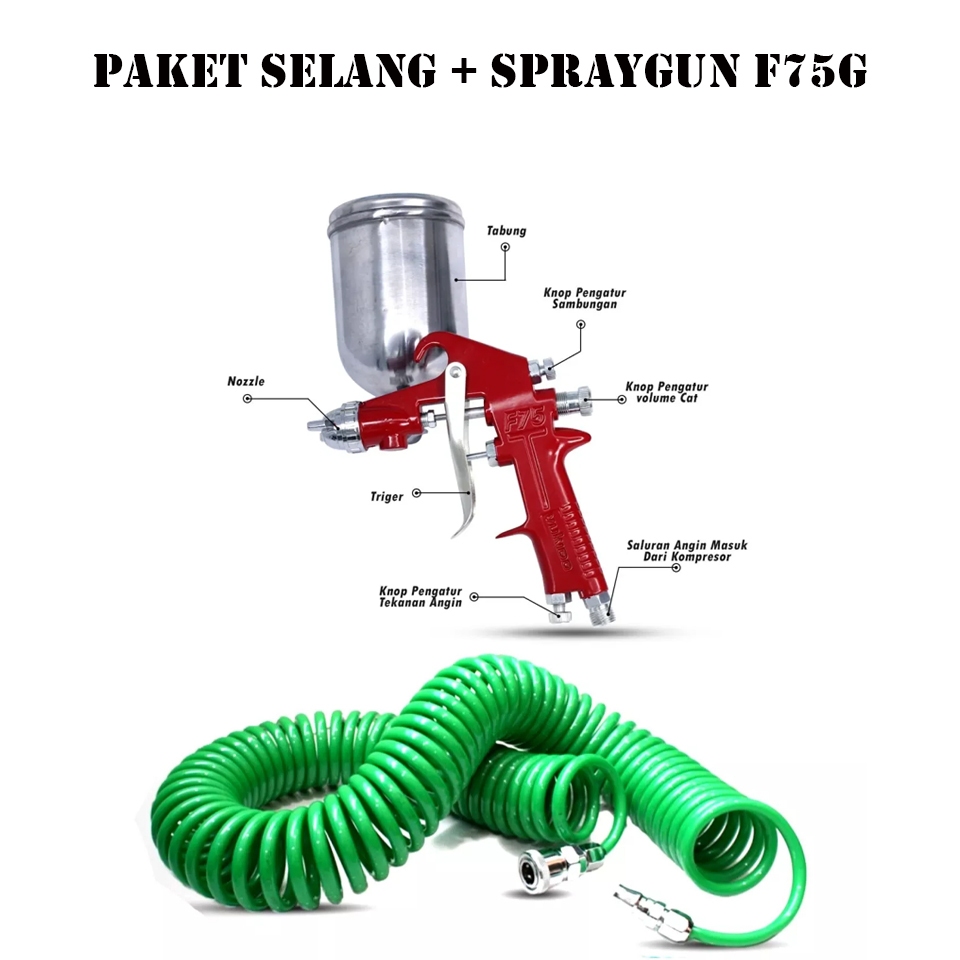 Paket tukang cat - Spray F75 Tabung Atas + Selang 4.5m-12m - Paket Semprotan Cat Kompresor