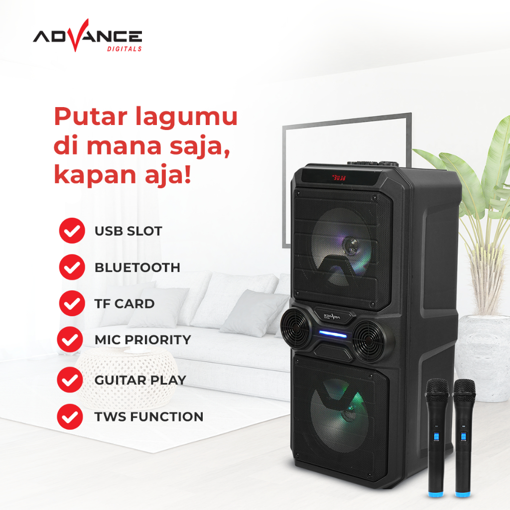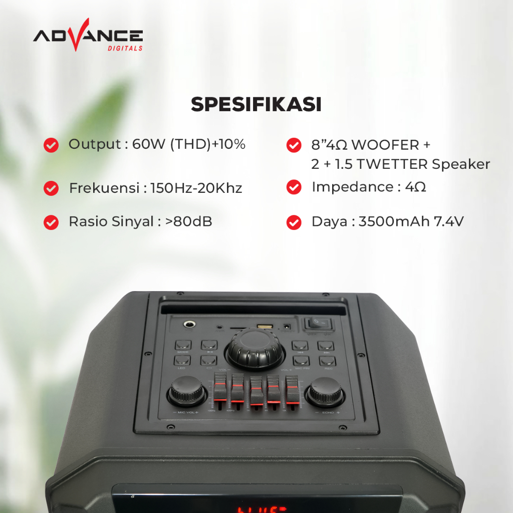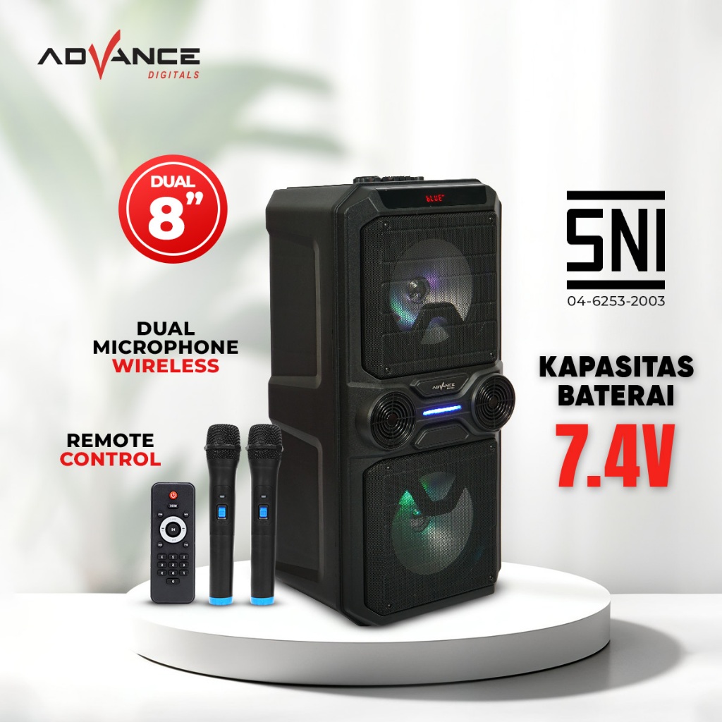 ADVANCE K8D Speaker Bluetooh Meeting Portable Doble speaker FREE 2 Mic 8 inch Garansi Resmi 1 Tahun