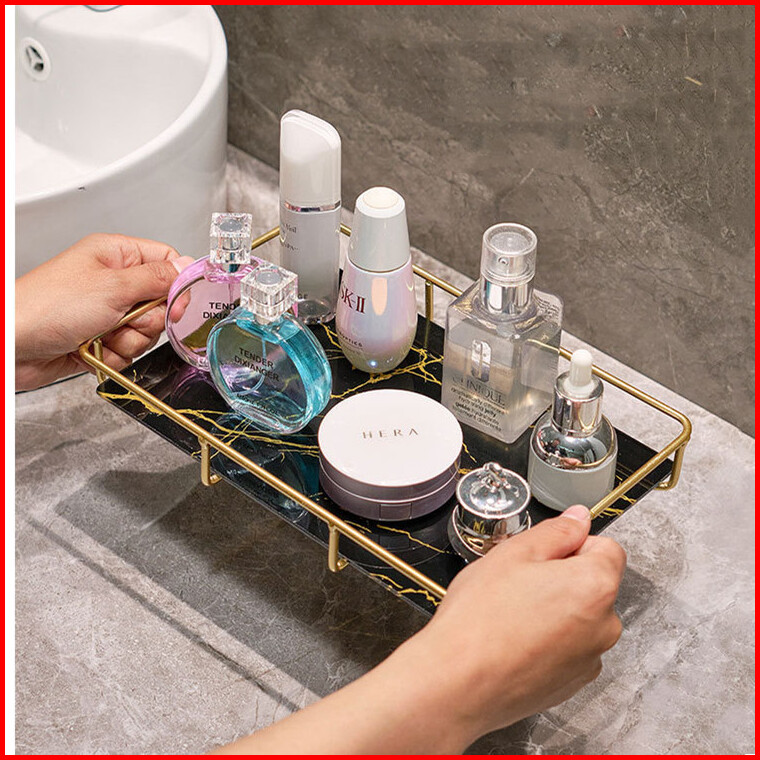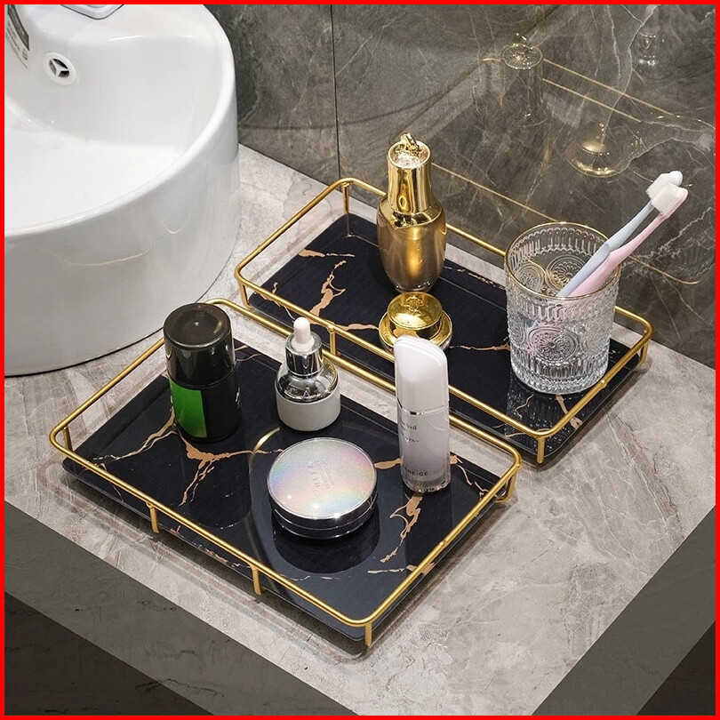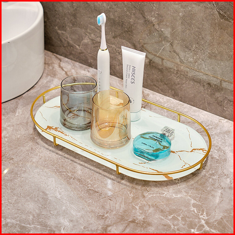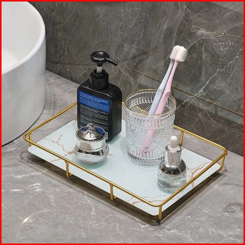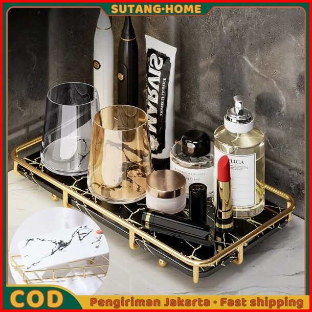 Sutangmarble Tray Kaca Persegi Pajangan Dekorasi Nampan Alat Kamar Mandi Rak Penyimpanan Kosmetik Keramik