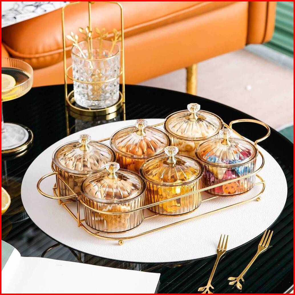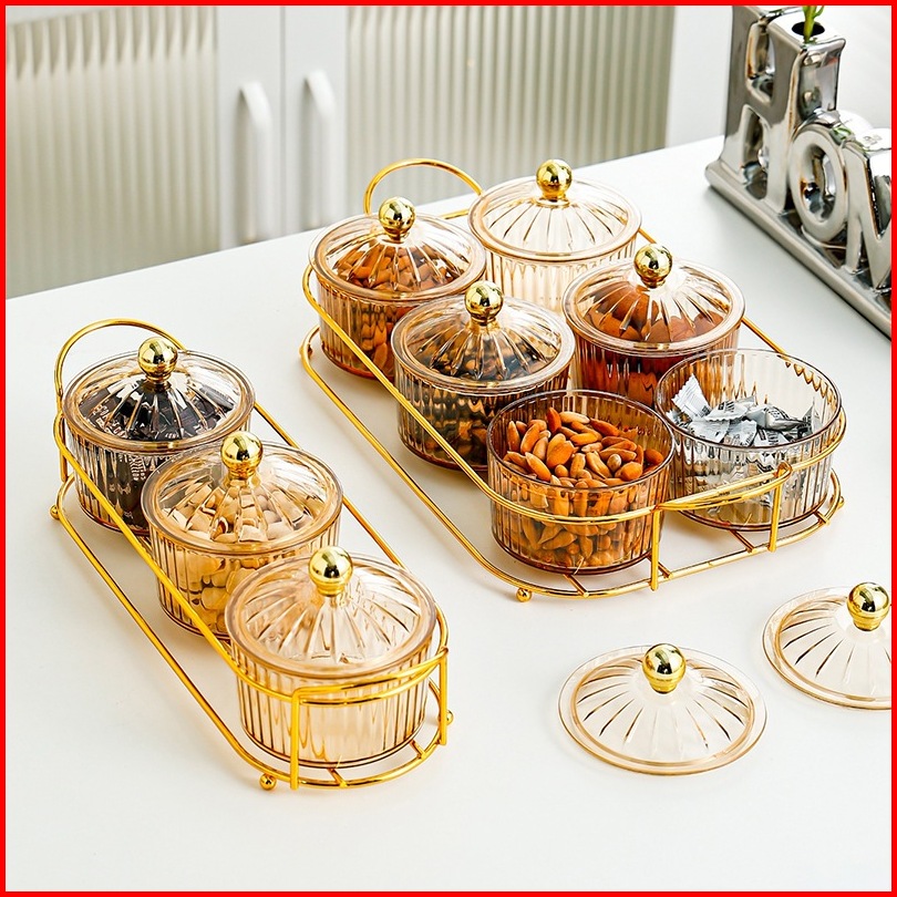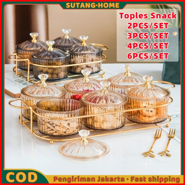 Sutang Snack Tray Toples Bulat Akrilik Dengan Nampan Minimalis Wadah Piring Penyimpanan Makanan Ringan Buah Kering Stora