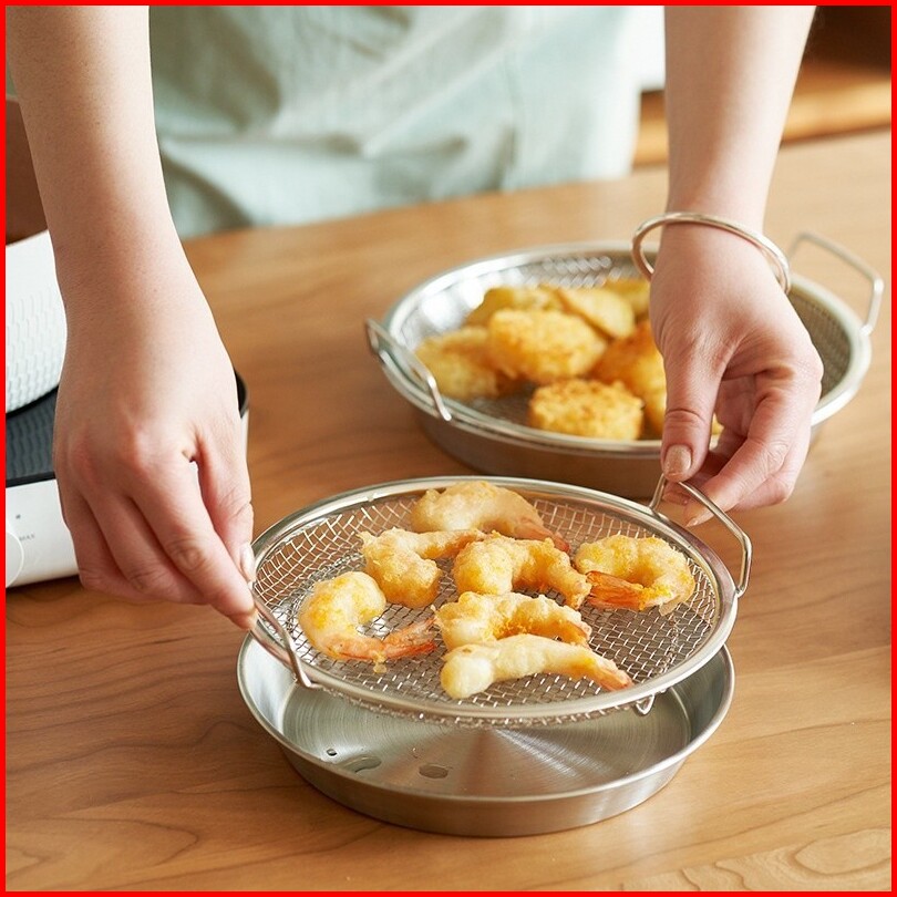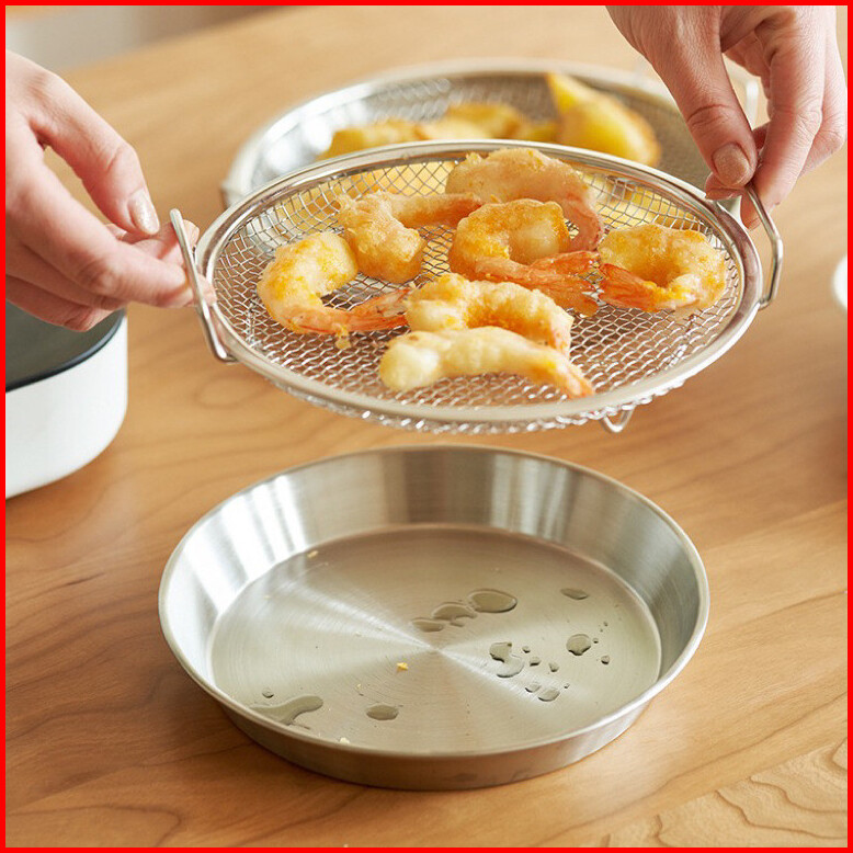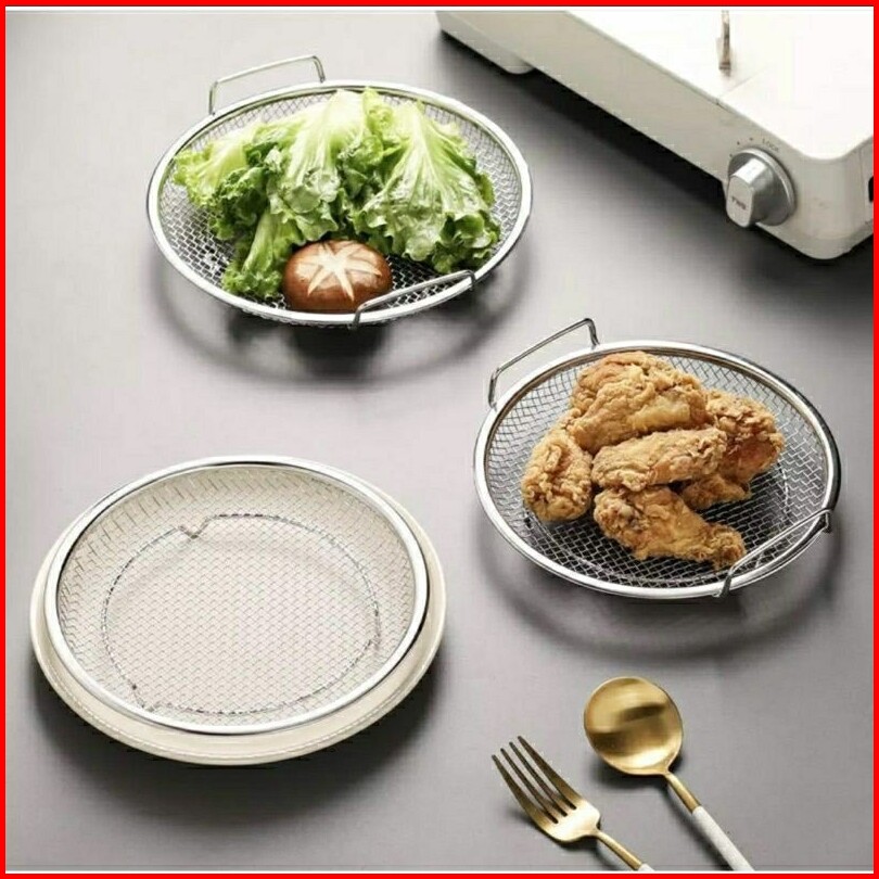 Sutang2 In 1 Piring Tirisan Minyak Saringan Gorengan Serbaguna Gagang Stainless Tebal 20 22cm Cooking Cooling Rack Fried