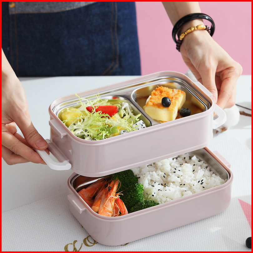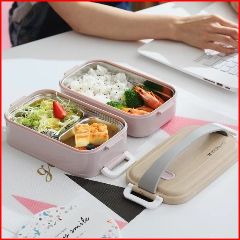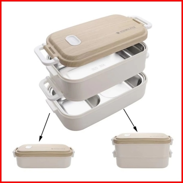 Sutangbento Lunchbox Stackable Stainless Steel 304 Kayu Jepang Lunch Box 2 Tingkat Rantang Kedap Udara Kotak Bekal Makan