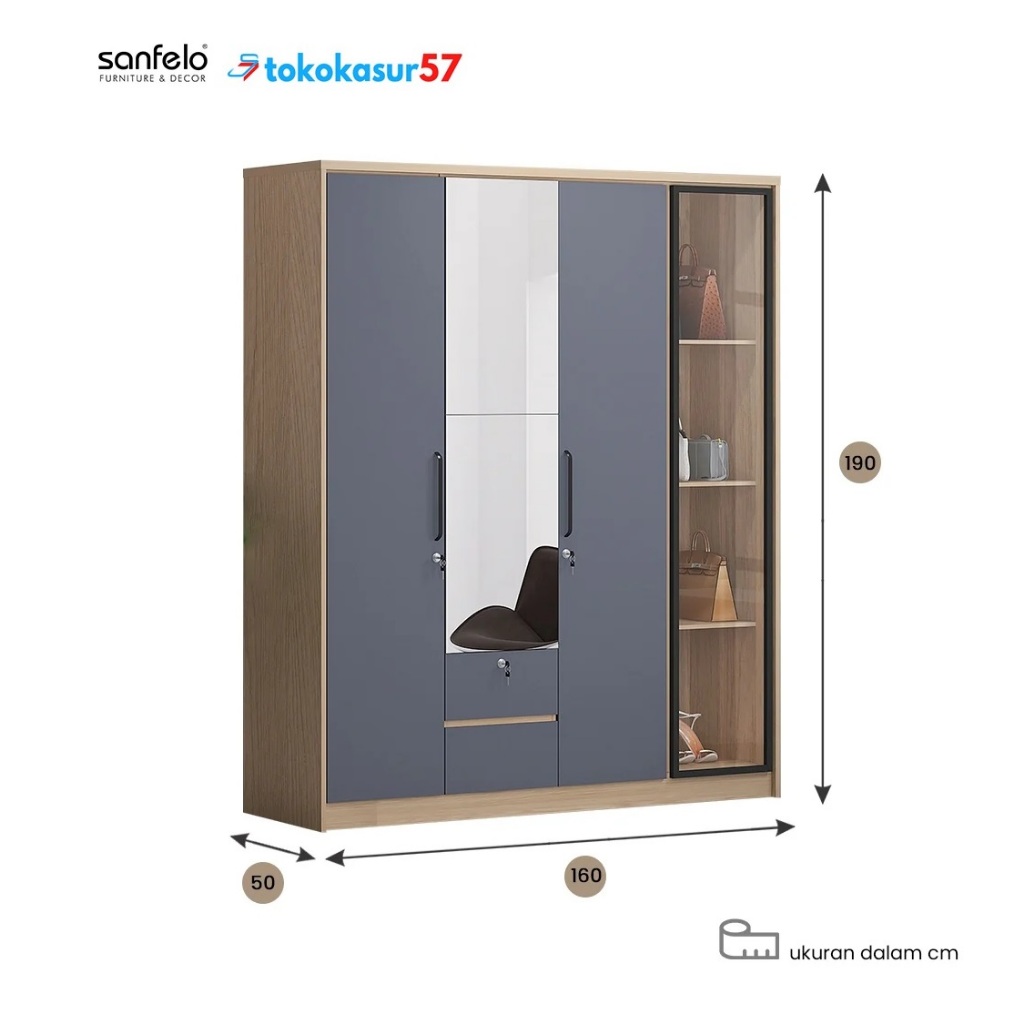 Lemari Pakaian 4 Pintu / Wardrobes 160x190x50 cm CENA WD 4D - Sanfelo Gratis Ongkir