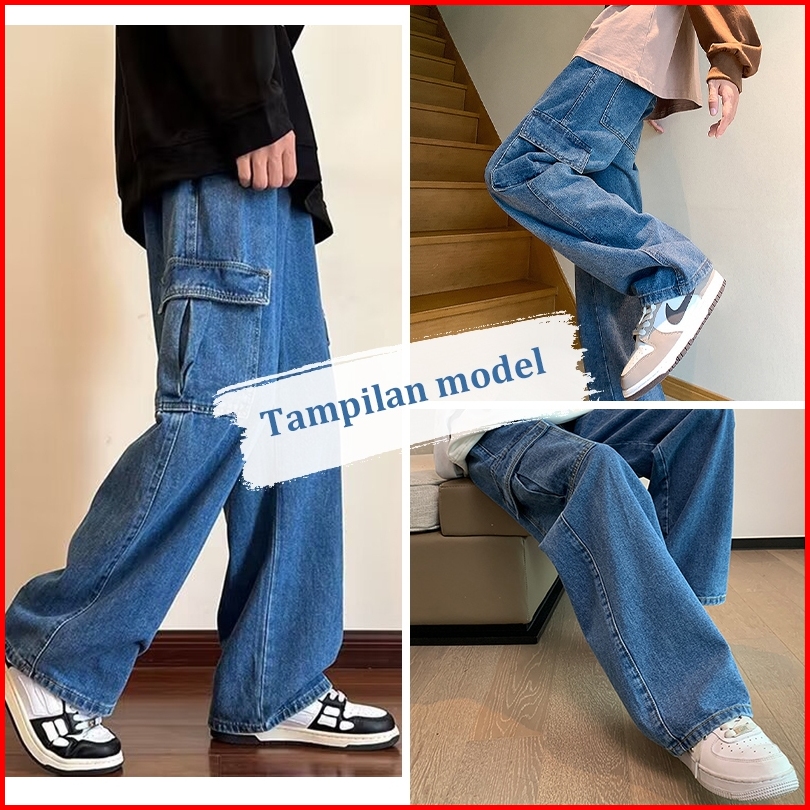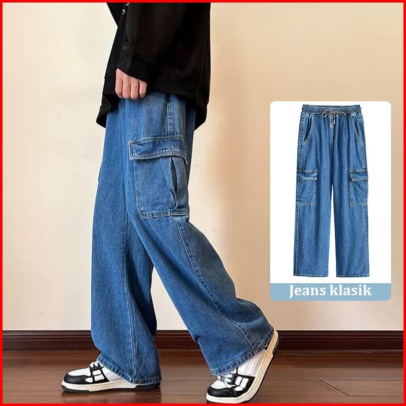 Celana Jeans Cargo Jeans Celana Cargo Jeans Celana Jeans Pria Korean Style Jeans Cowok Kargo Jeans Celana Jeans Gombrong