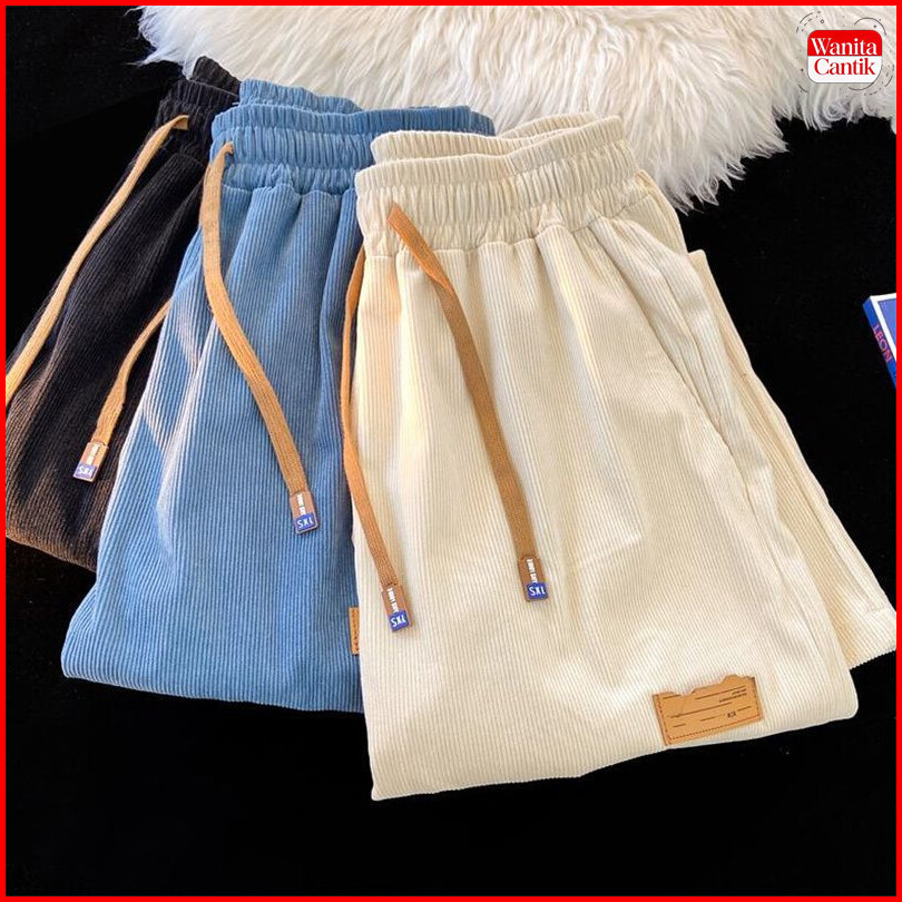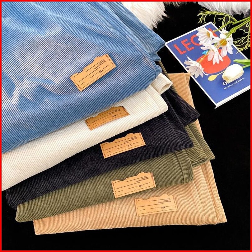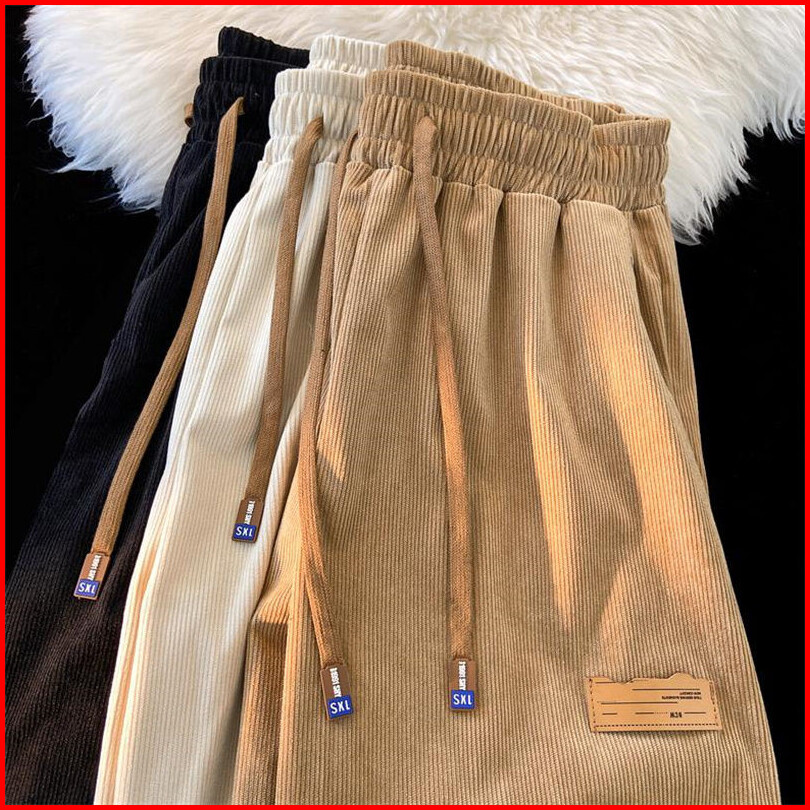 S-5xl Celana Panjang Corduroy Unisex Model Kasual Desain Loose Fit Lurus Dan Stylish Untuk Olahraga