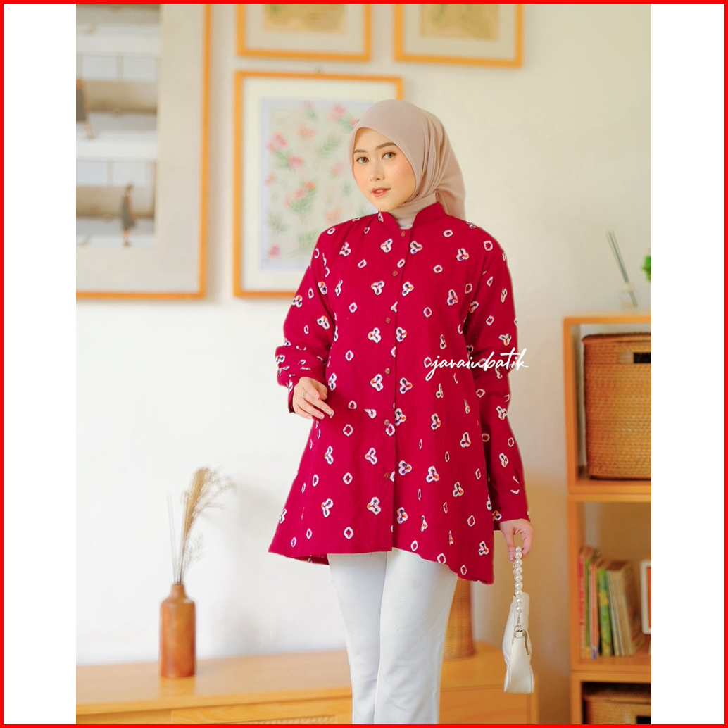Javainbatik - Blouse Giandra Batik Jumputan - Batik Kerja - Atasan Wanita