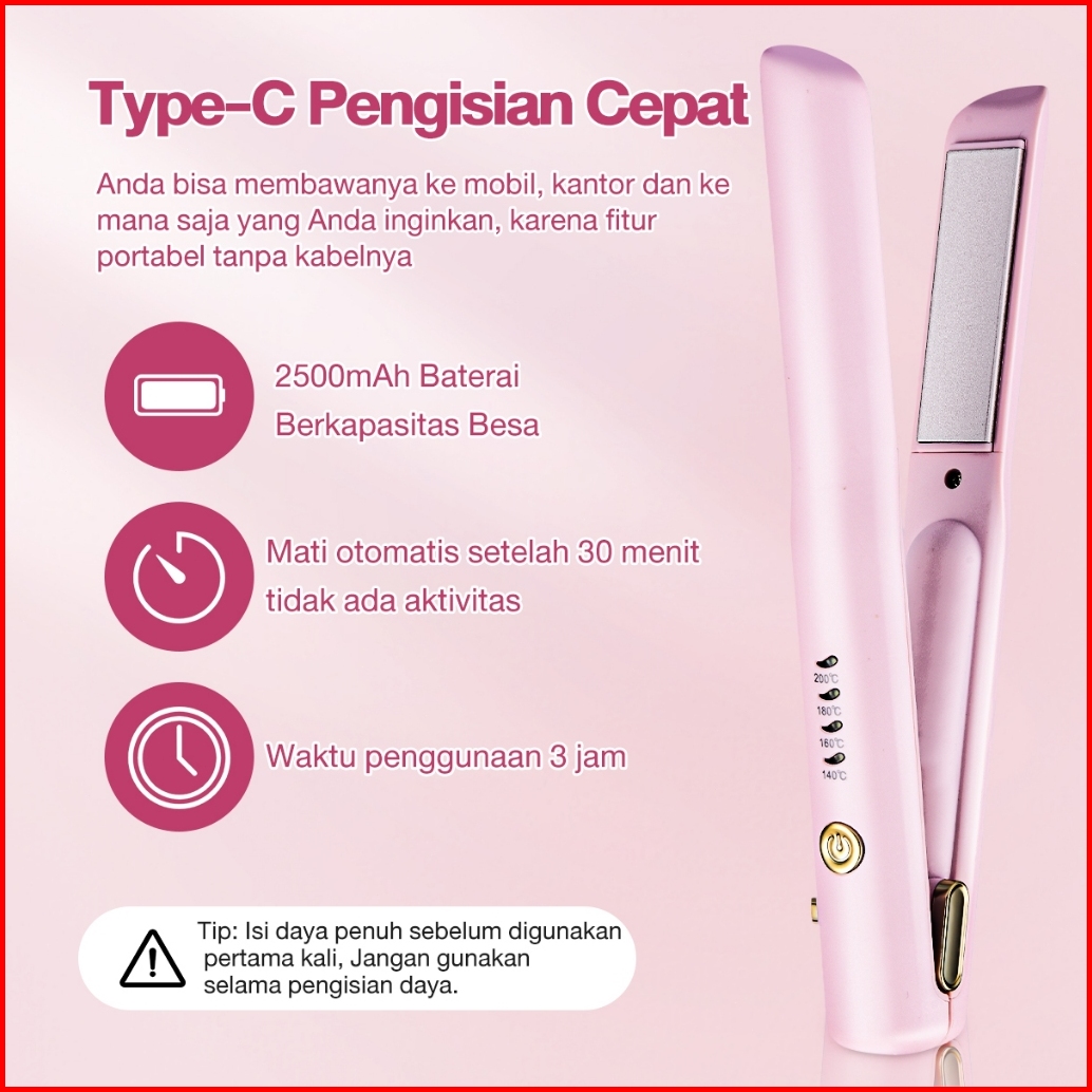 Ckeyin Hair Straightener 2in1 Cordless Hair Curly Catokan Rambut Lurus Portabel Catok Pelurus Rambut