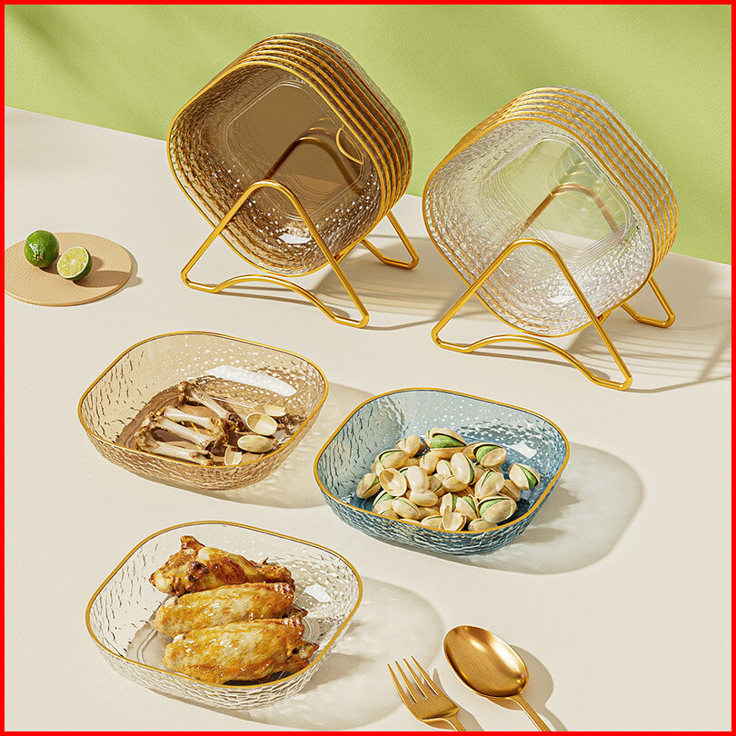 Set Pet Piring Persegi Meja Makan Dim Sum Piring Rumah Tangga Tulang Piring Plastik Makanan Ringan Piring 1 Set 6 Piring