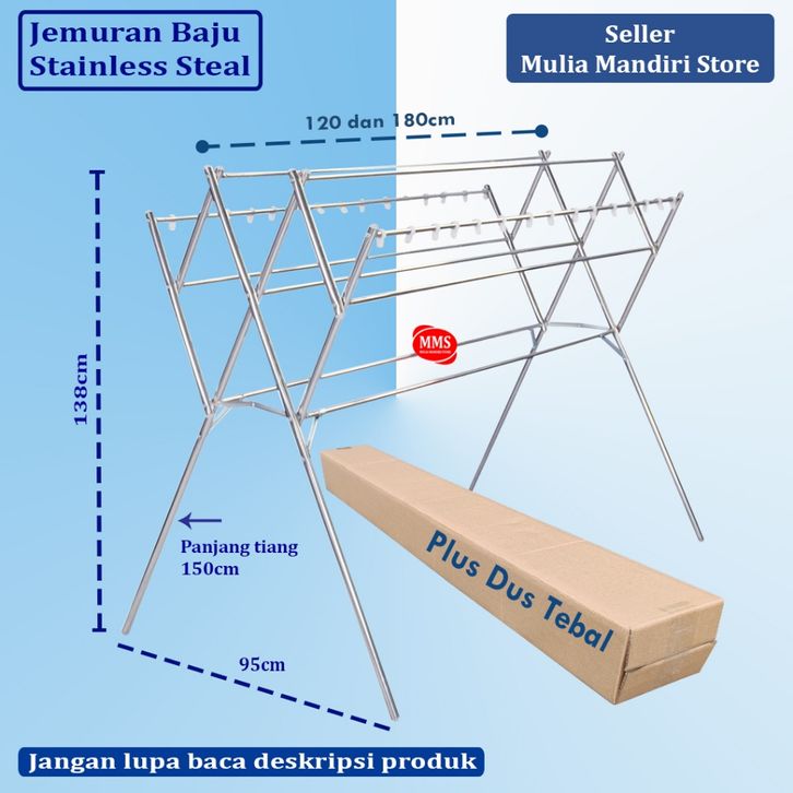 Jemuran baju lipat stainless steel/bajja antti karrat kuat dan kokoh