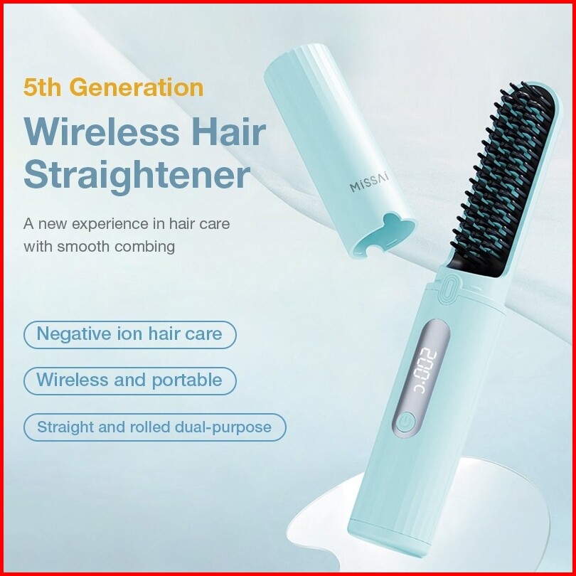 Missai Sisir Pelurus Rambut Cordless Hair Straightener 4 Tingkat Tampilan Layar Digital Rambut Listrik Nirkabel Hair Com