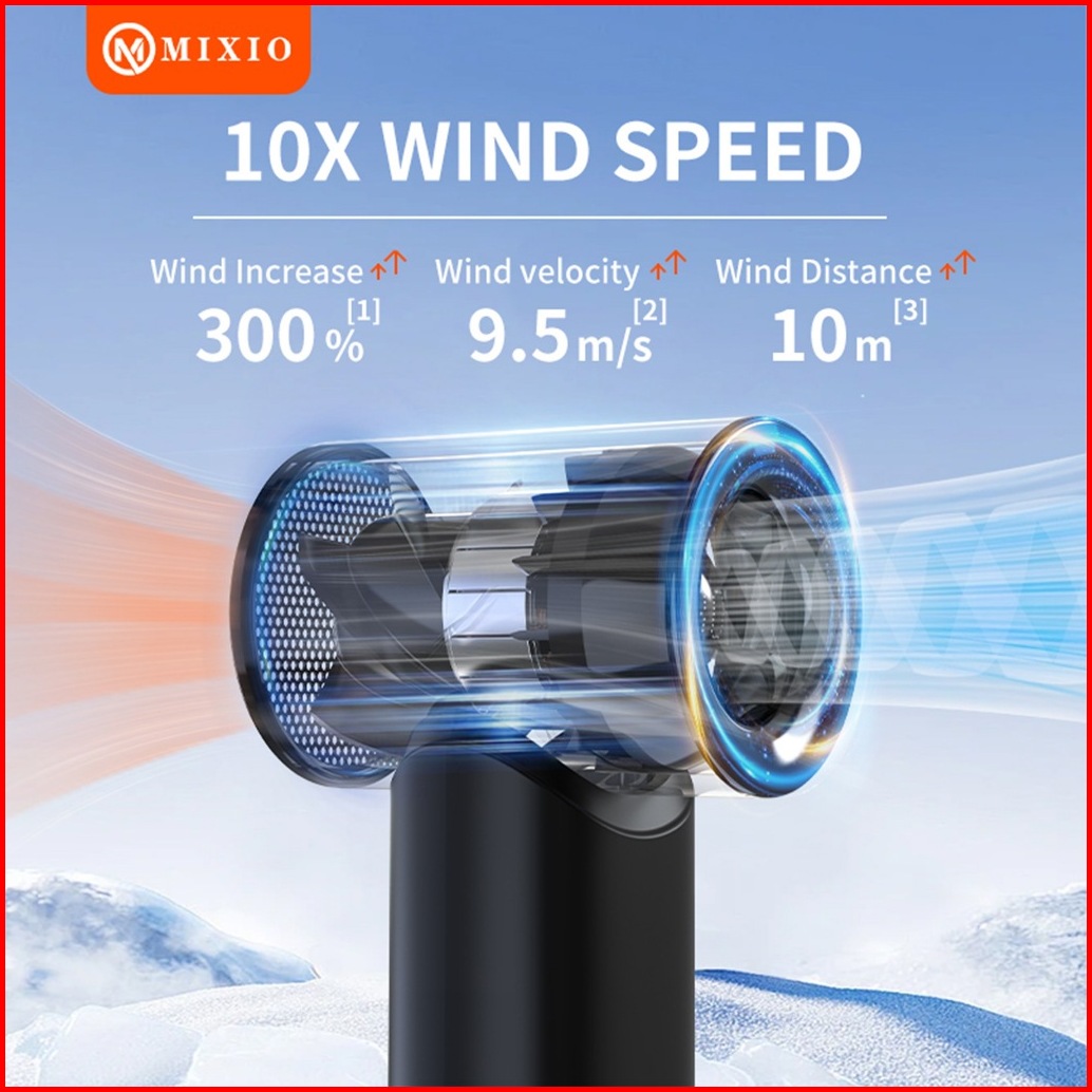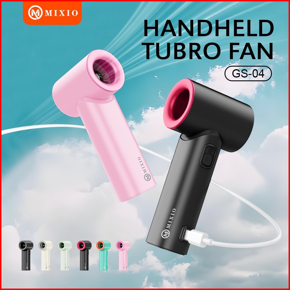 Mixio Gs-04 Mini Kipas Angin Turbo Strong Portable Handheld Rechargeable Mini Fan Lipat High Speed 17400rpm