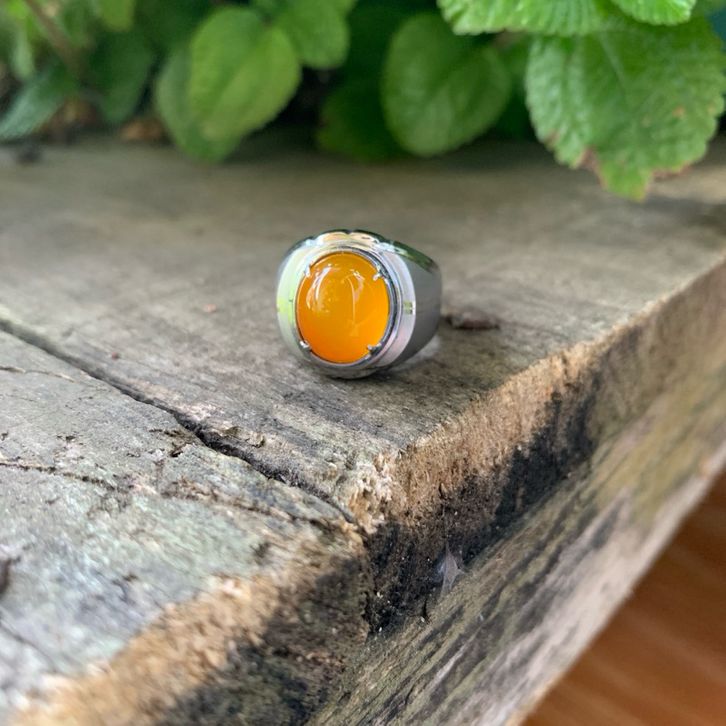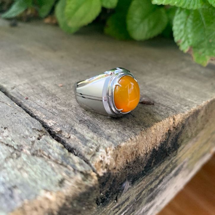 Cin cin Batu Akik Natural Yellow Sunkish Sulaiman Baturaja Asli Yakut Ring Monel Doff Handmade Elegan Simple
