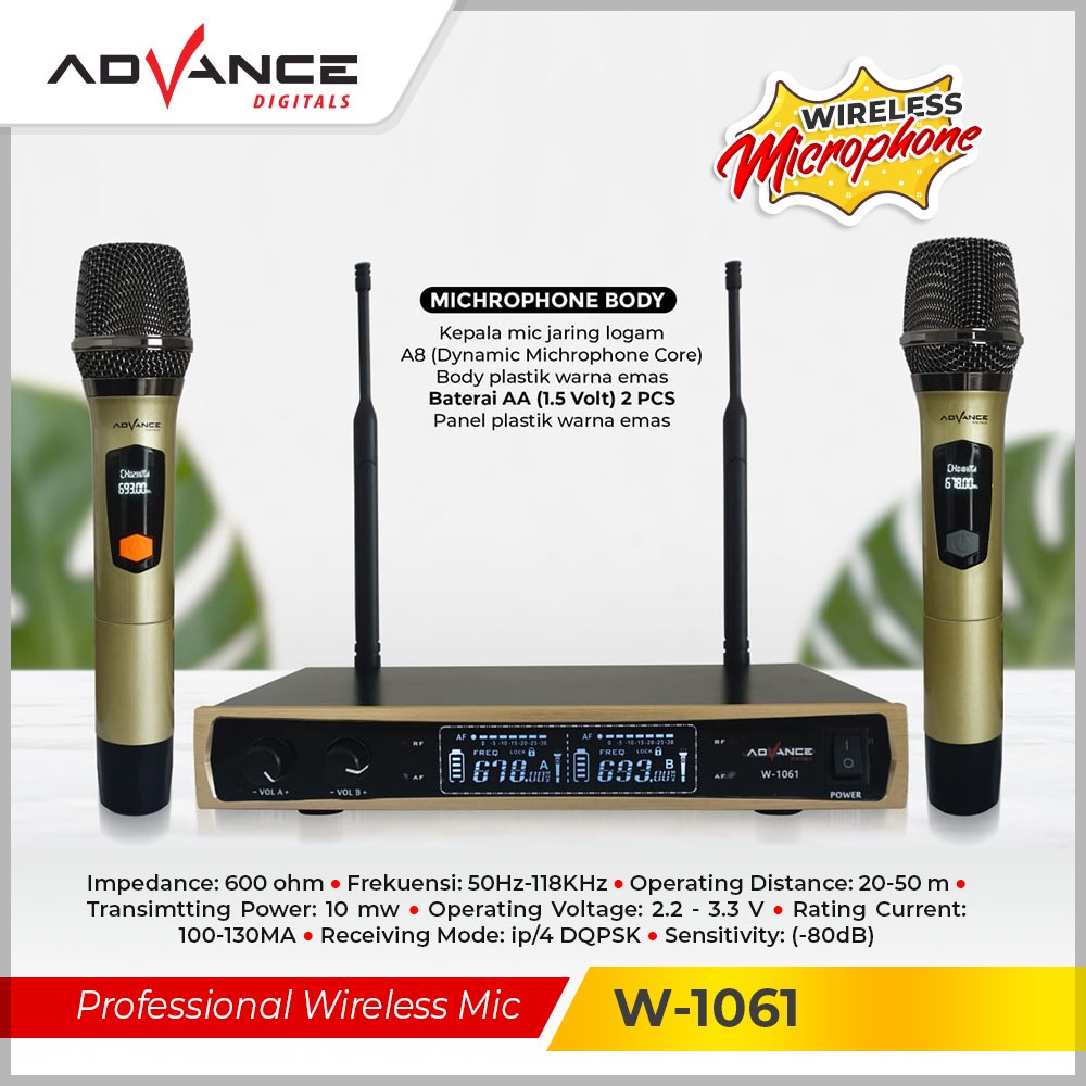 ADVANCE W1061 Dual Mic Wireless Profesional Microphone + amplifier mic wireless