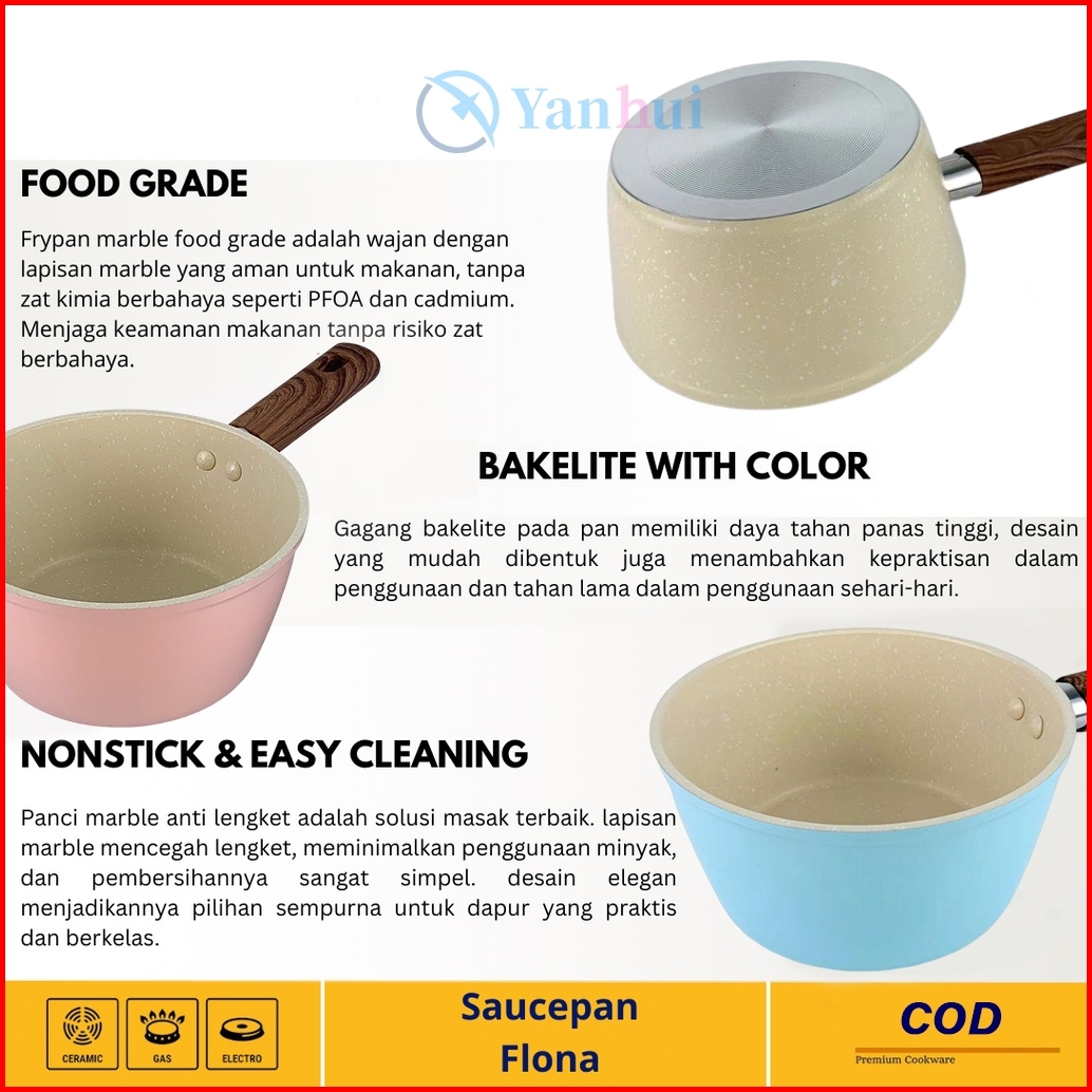 Panci Susu Granite Marble Sauce Pan Marble Anti Lengket Panci Masak Sup Kuah 16cm 18cm