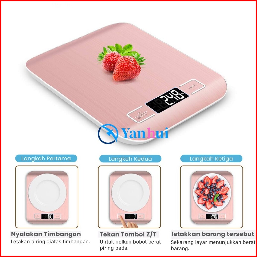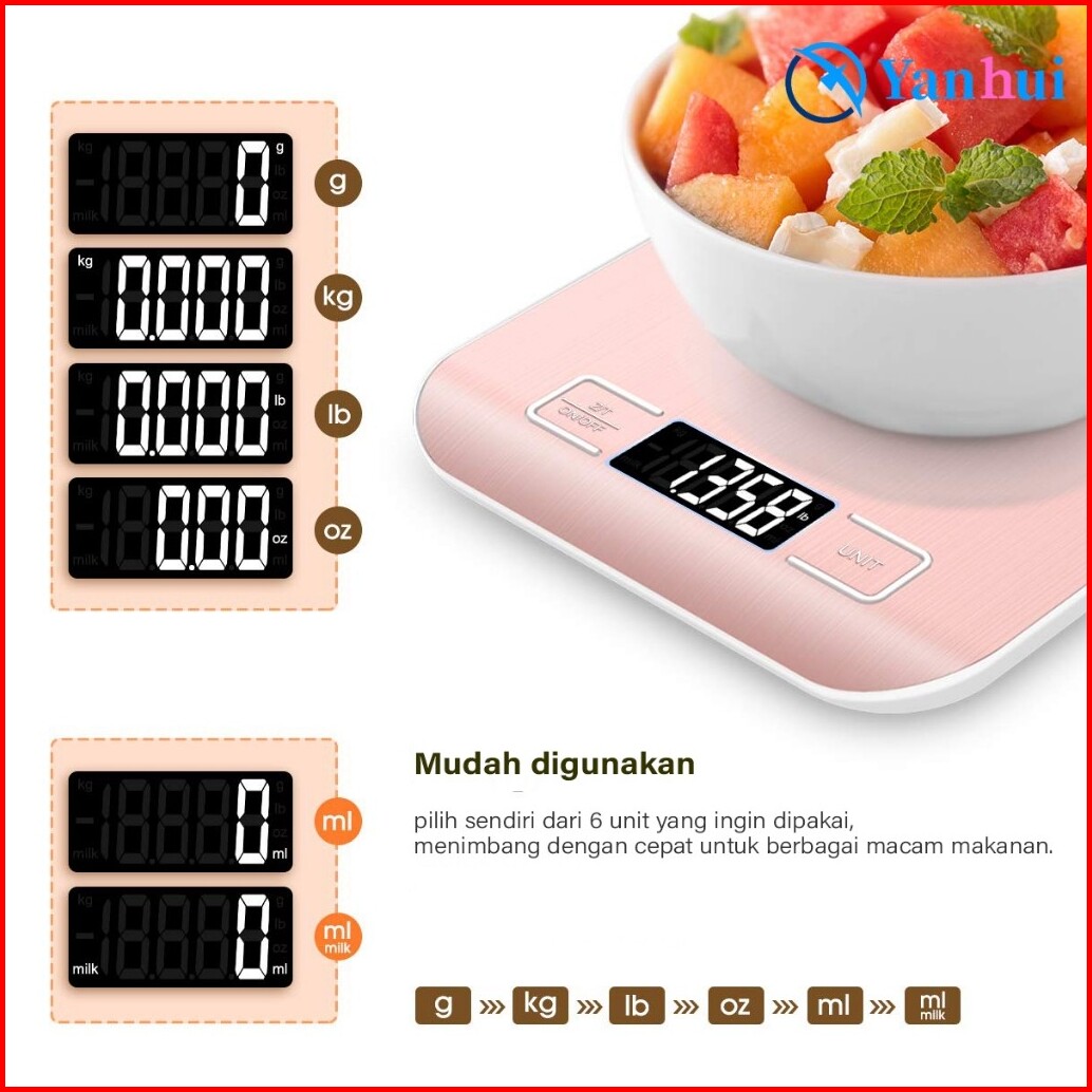 Timbangan Dapur Digital 1gr 10kg Stainless Steel Dengan Tare Usb Rechargeable