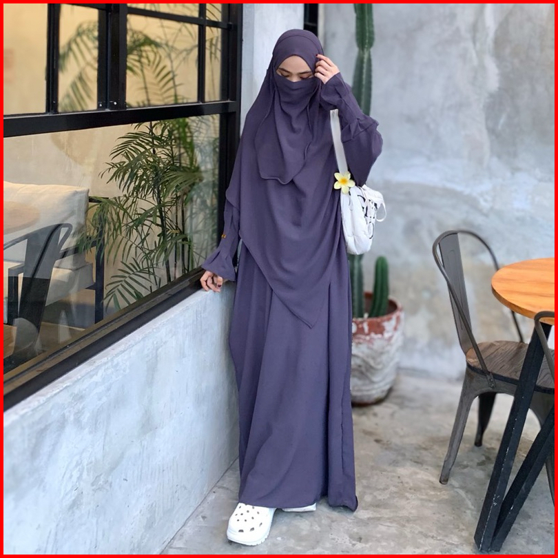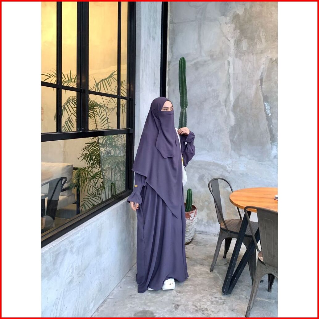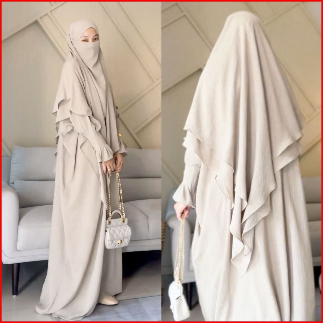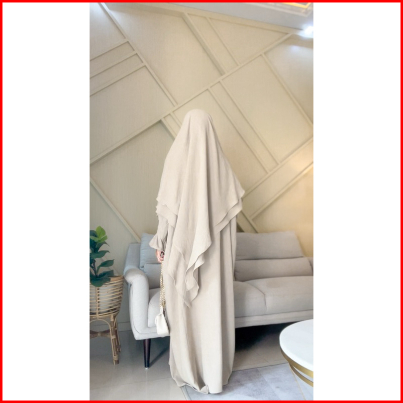 Tsurayya - One Set Abaya Jannah Abaya Frenchkhimar Free Cadar Tali Crinkle Airflow Basic Gamis One Set Lebaran