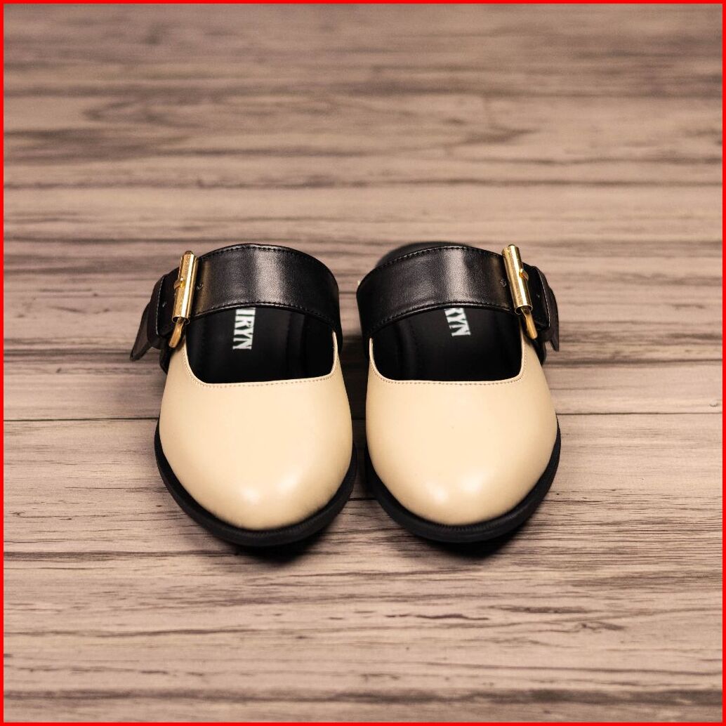 Sepatu Sandal Mules Flatshoes Wanita Heels Hak 2 Cm Vienna Cream Hiryn