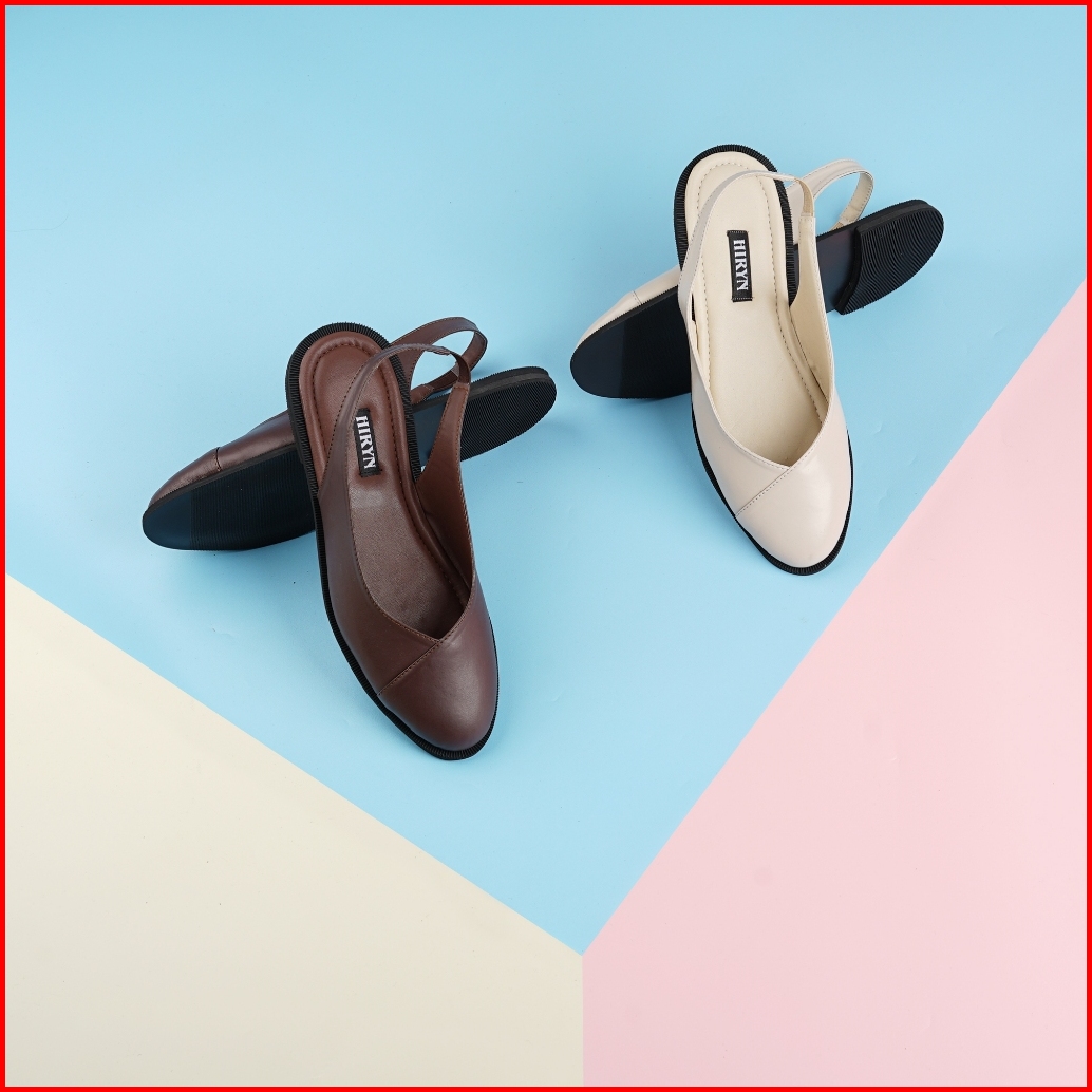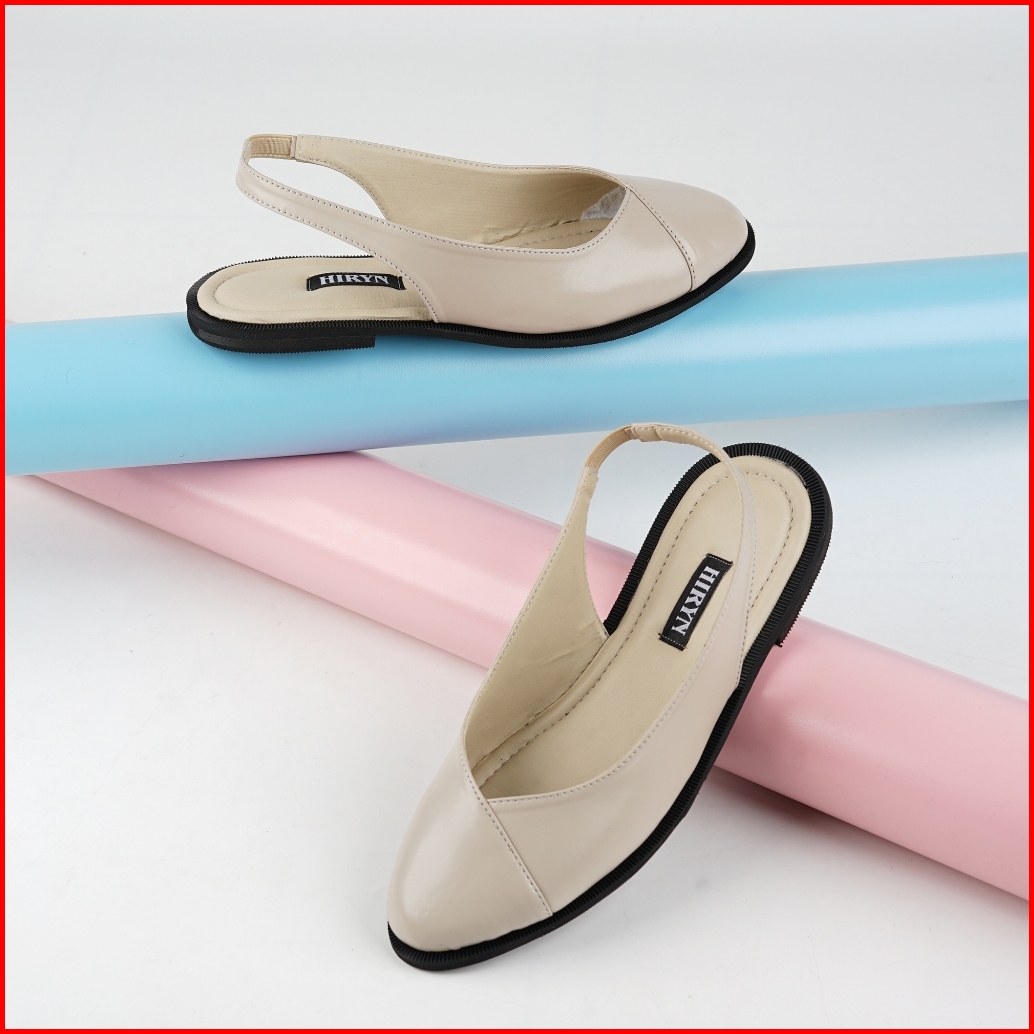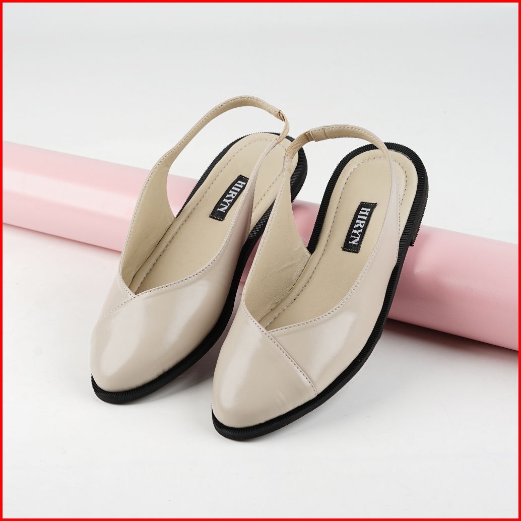 Sepatu Sandal Mules Flatshoes Wanita Heels Hak 2 Cm Youbi Cream Hiryn