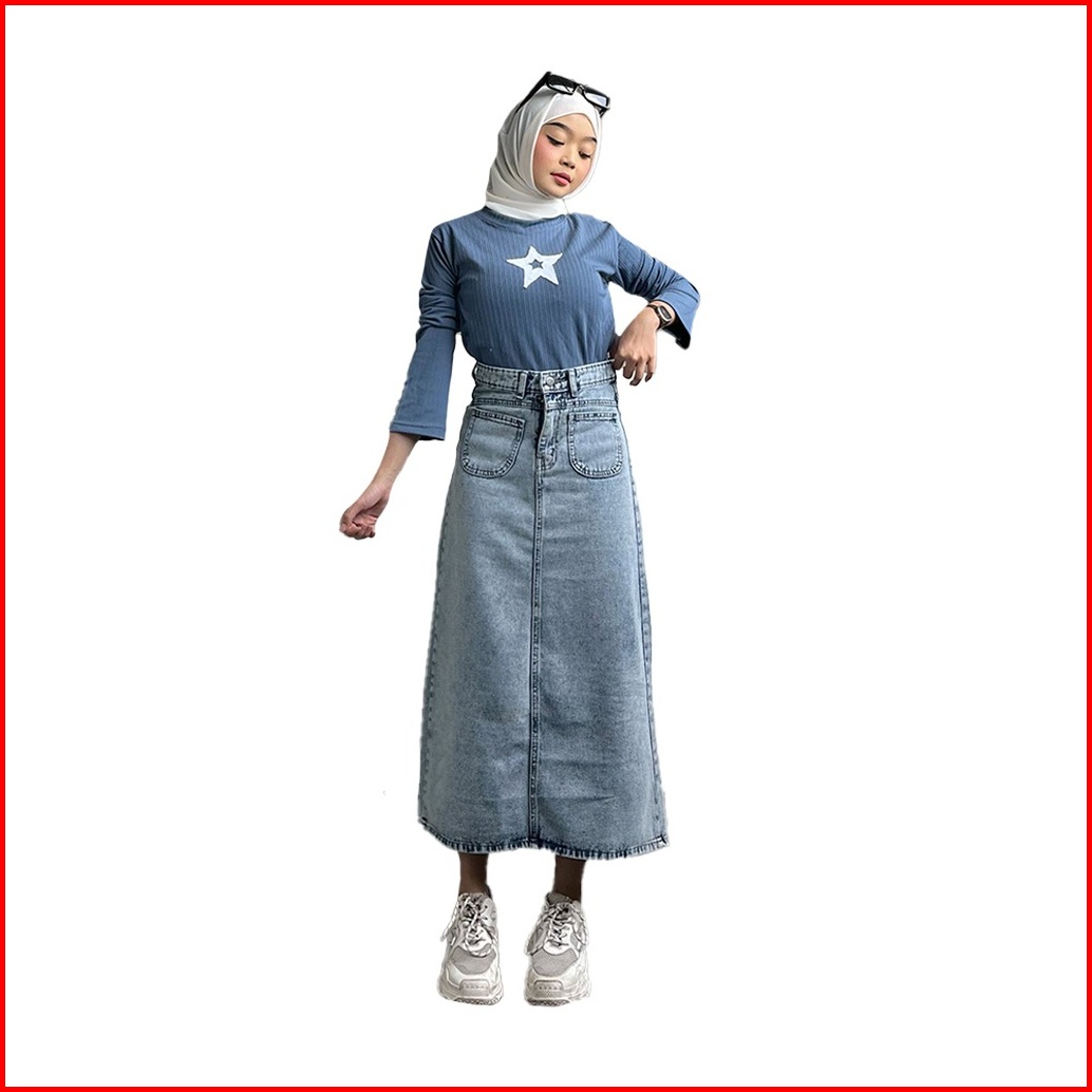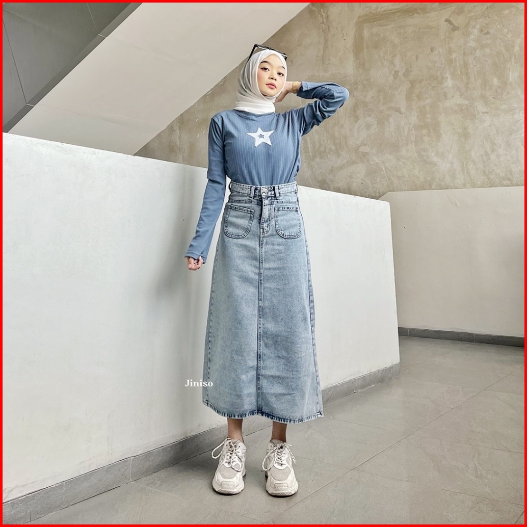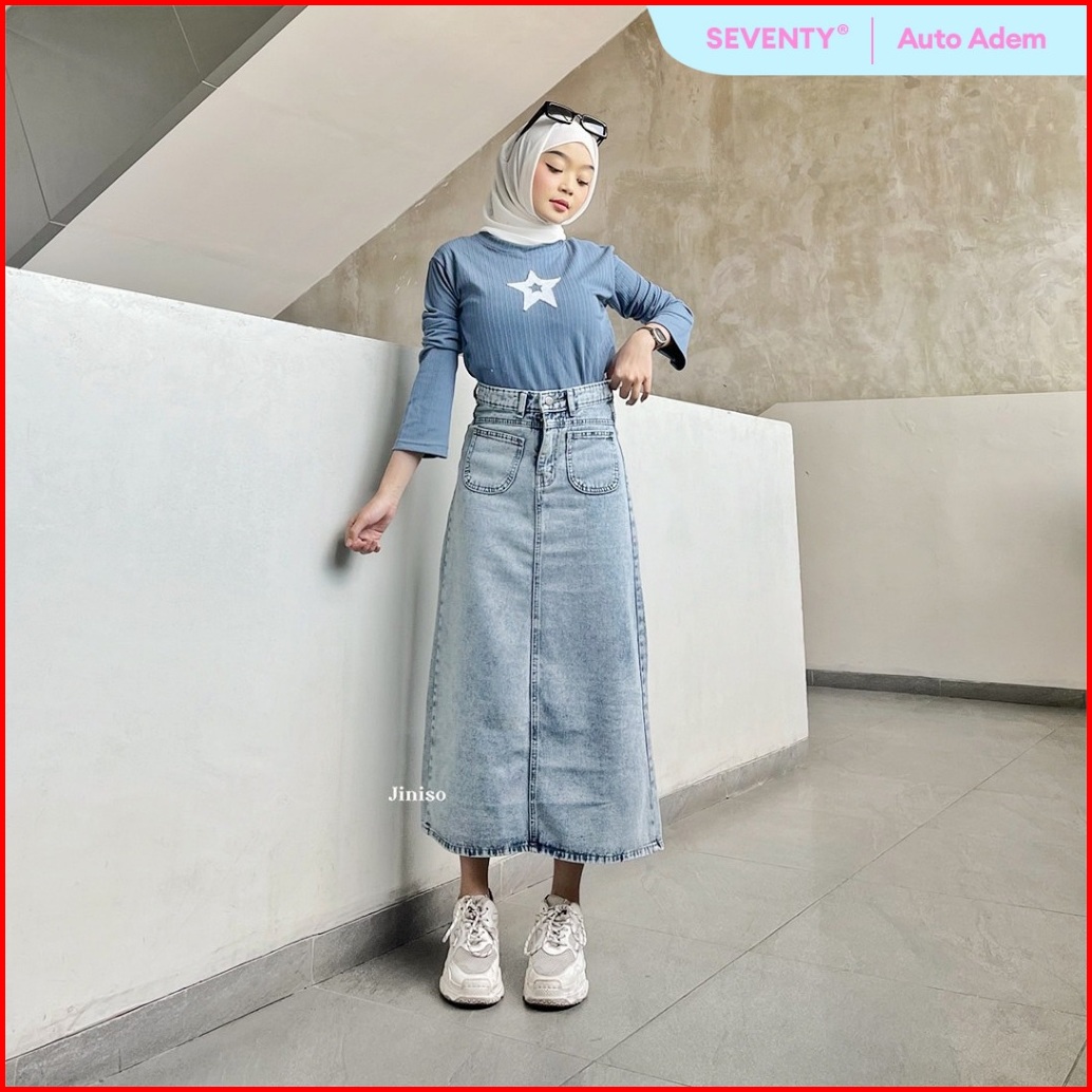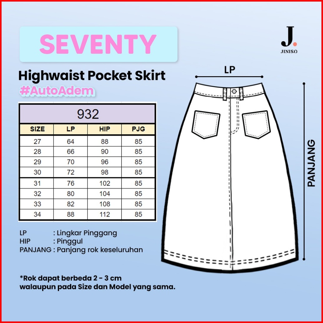 Jiniso - Highwaist Pocket Rok Slit Jeans Panjang 932 Seventy