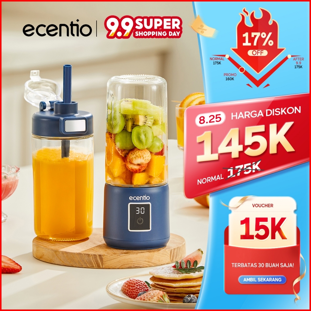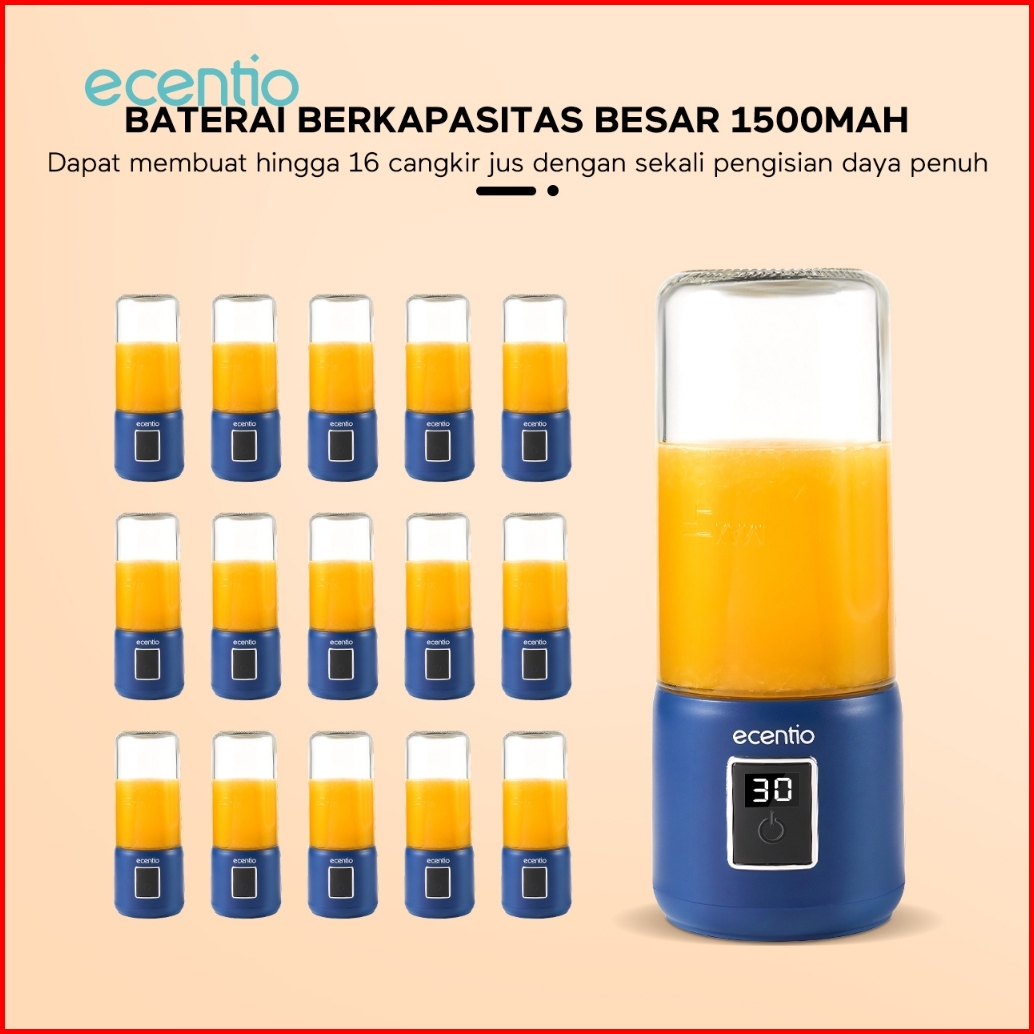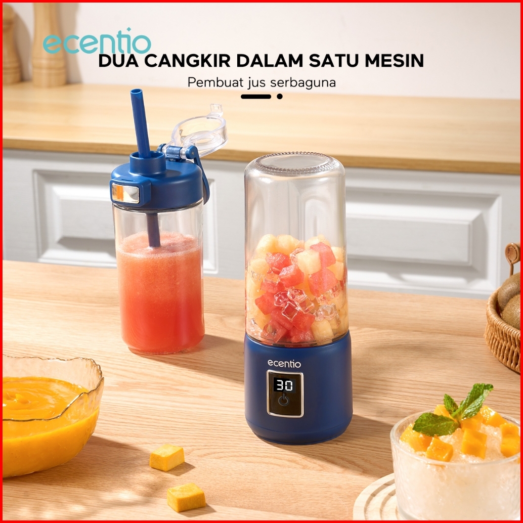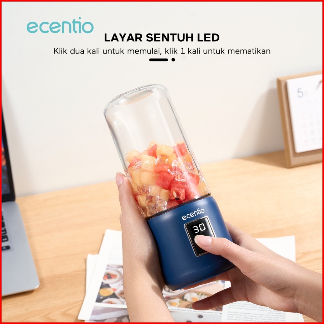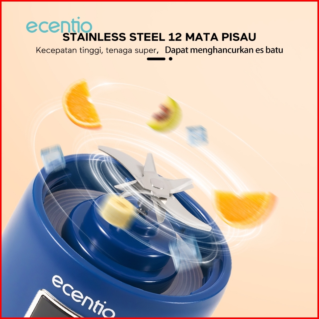 Ecentio Juicer Portable Led Touchscreen Dual Cup 500ml 500ml Kaca Gelas Mpasi Premium 12 Mata Pisau Juicer Bayi Food Gra