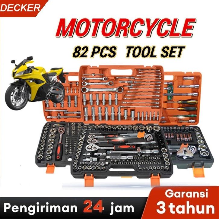 TERBARU DECKER Tool Kit 82 Set Kunci Sok Kunci Shock 4682 pcs Mobil Motor Lengkap Socket Tool Kit set Pas Ring Motor