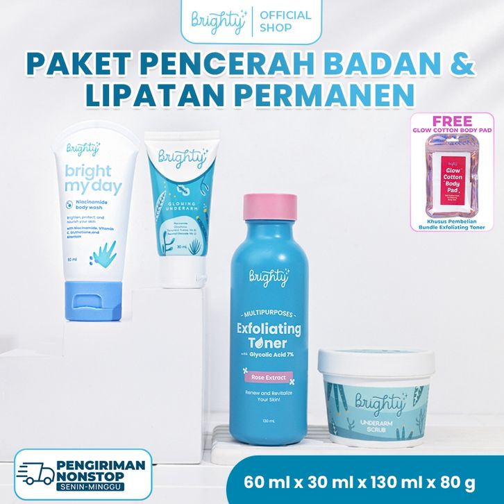 eksfoliasi toner Brighty Bundle Multipurpose Exfoliating Toner X Glowing Underarm X Underarm Scrub X Bright My Day BMD