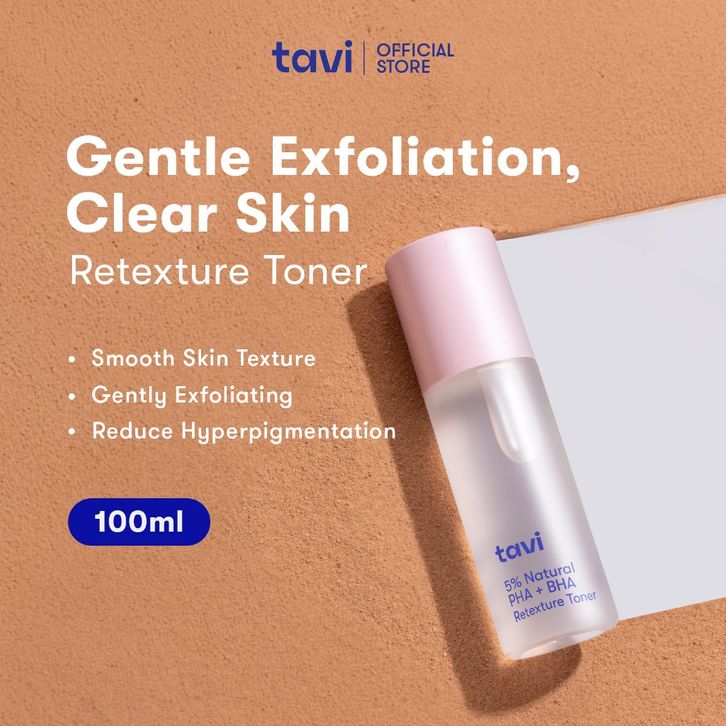 eksfoliasi toner TAVI 5 Natural PHA + BHA Retexture Toner 100 ml - Toner Eksfoliasi Meratakan Tekstur Kulit | Kulit Hal