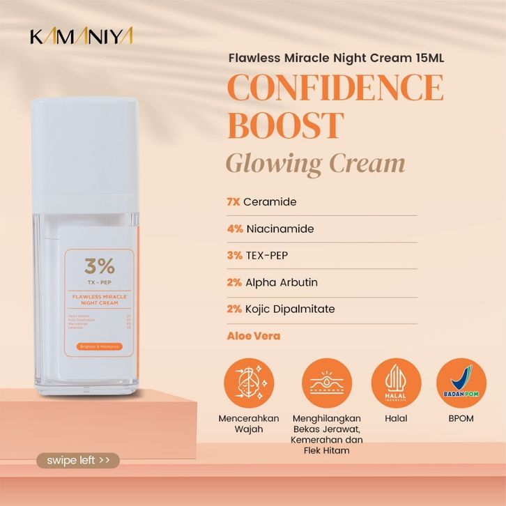 krim niacinamide KAMANIYA Night Cream Pencerah Wajah – 7 Ceramide + 4 Niacinamide + 2 Alpha Arbutin | 15ml | Glowing &