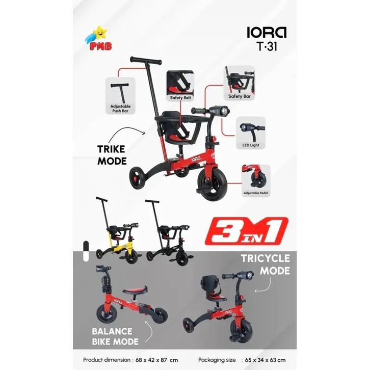Sepeda Anak Roda 3 Tricycle PMB IORA - Balance Bike Push Bike Sepeda Anak Roda Tiga