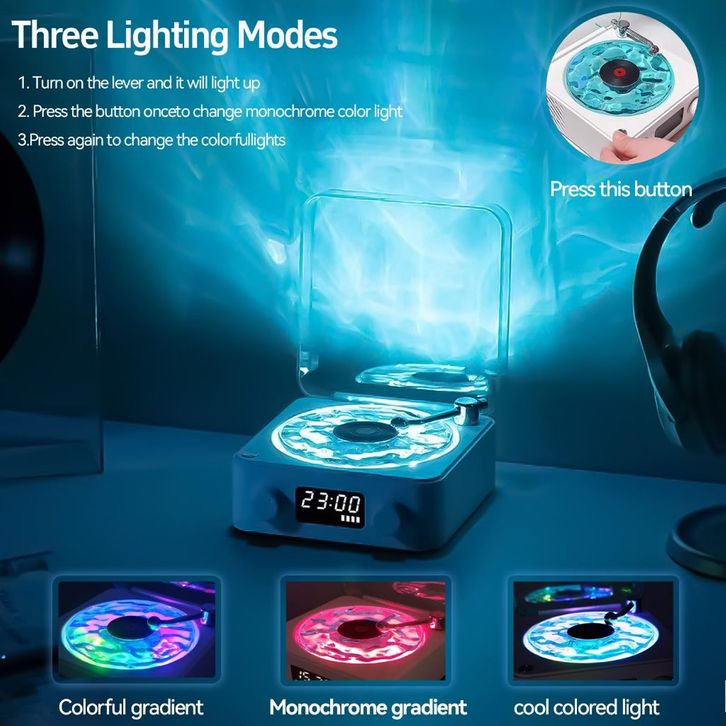Turntable Bluetooth Multifungsi - Pemutar CD dan Piringan Hitam dengan Speaker Stereo, Lampu Ripple Air & Layar