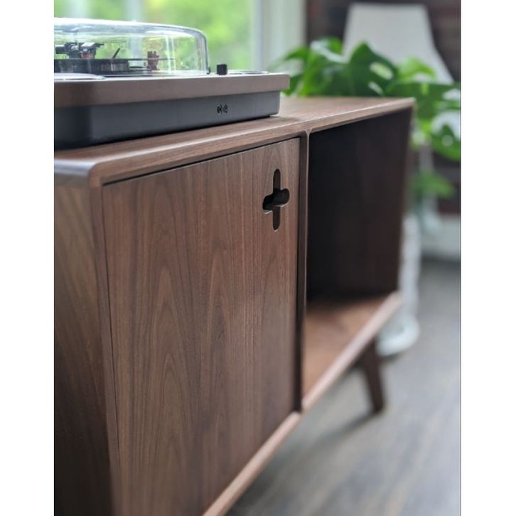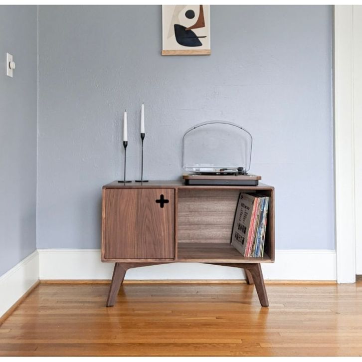 Mid Century Modern Record Player Stand, Walnut Record Storage, Record Player Cabinet