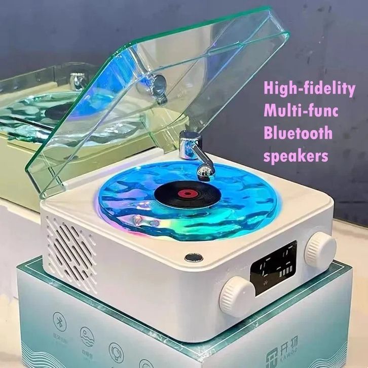 Waves Speaker Vinyl Player Retro Aqua Music Audio Bluetooth Mini Aesthetic Musik Box Full Bass Hadiah Ulang Tahun